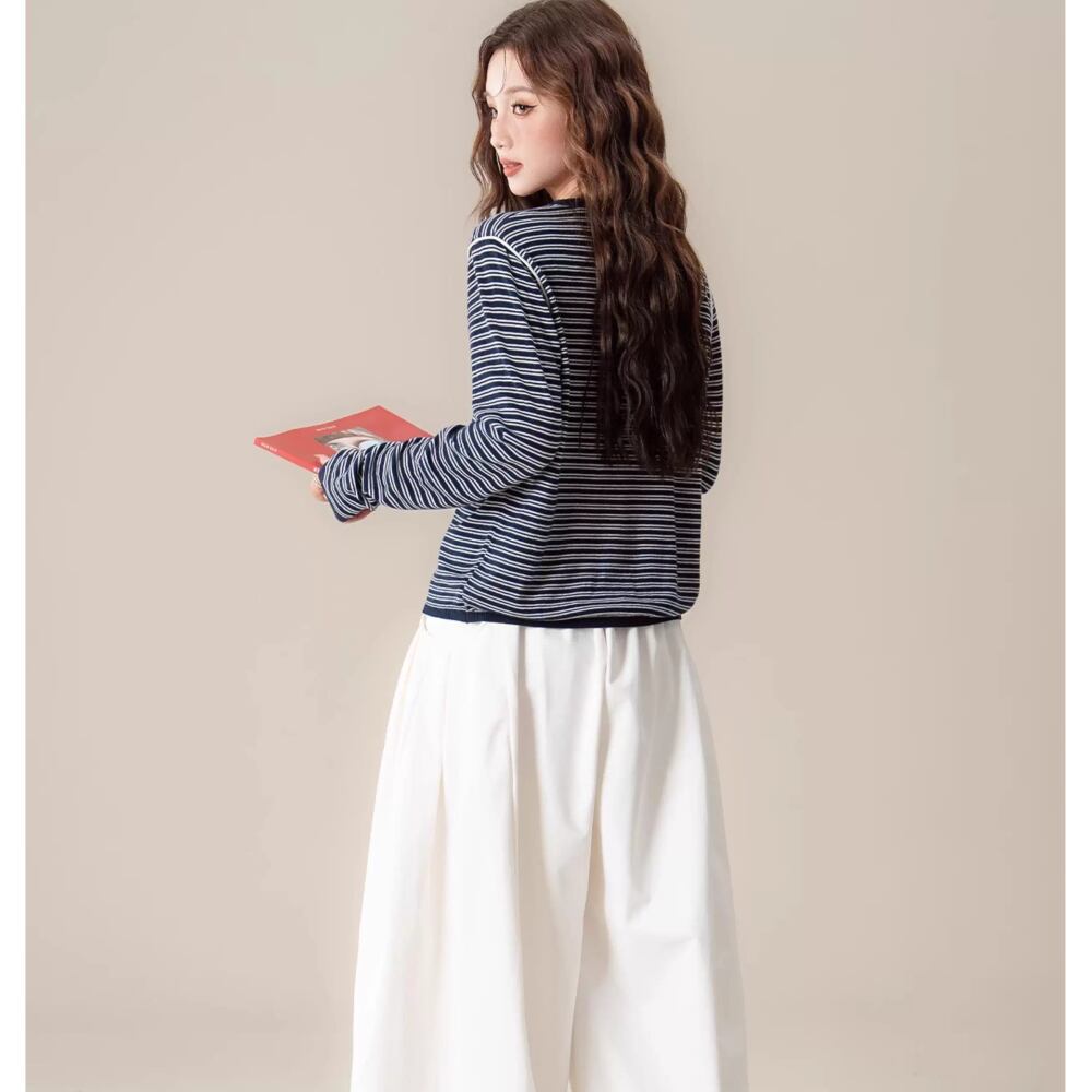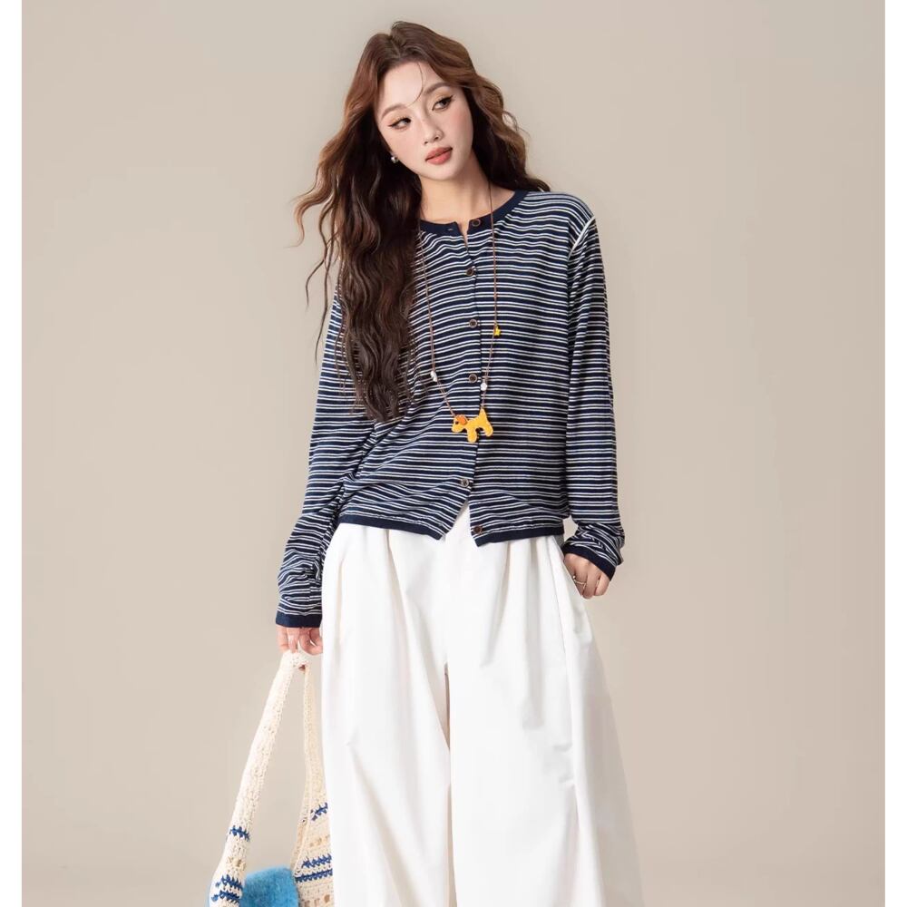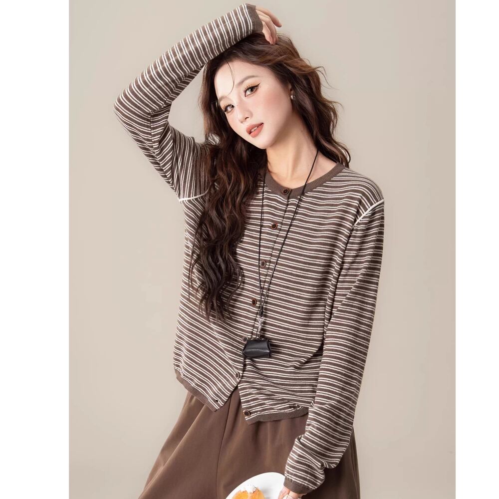 レディース トップス 長袖 カーディガン ボーダー柄 ネイビー ブラウン AS12540