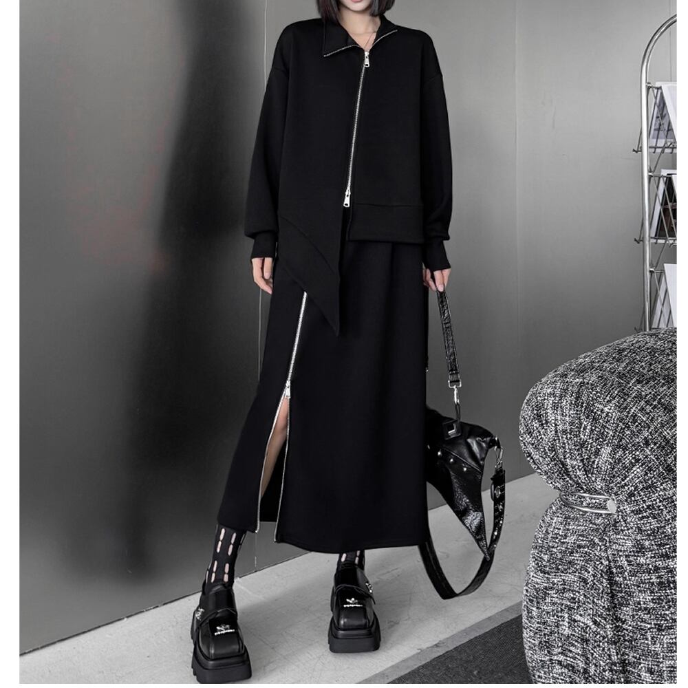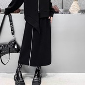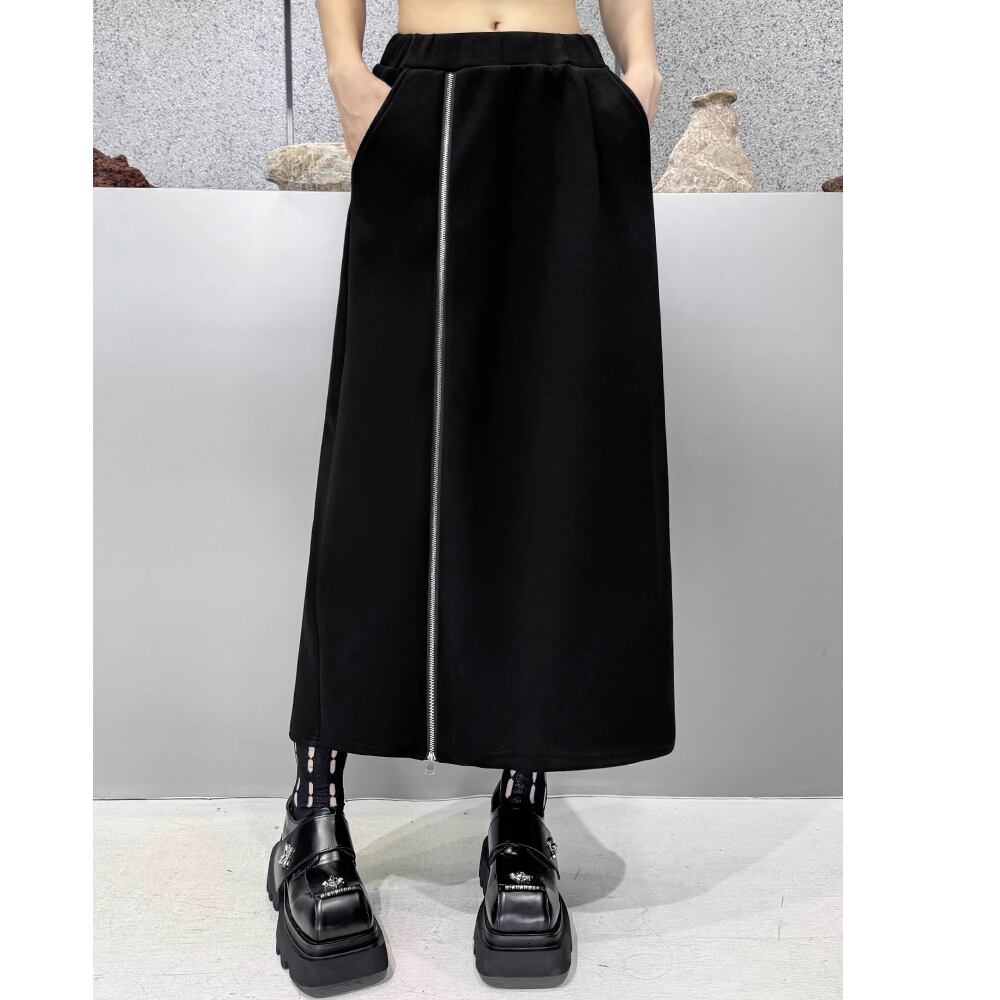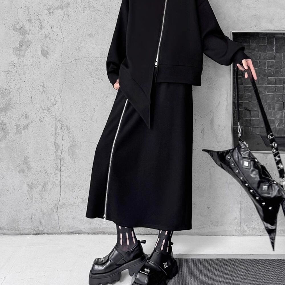 レディース フロントジッパー ロングスカート ブラック AS12554