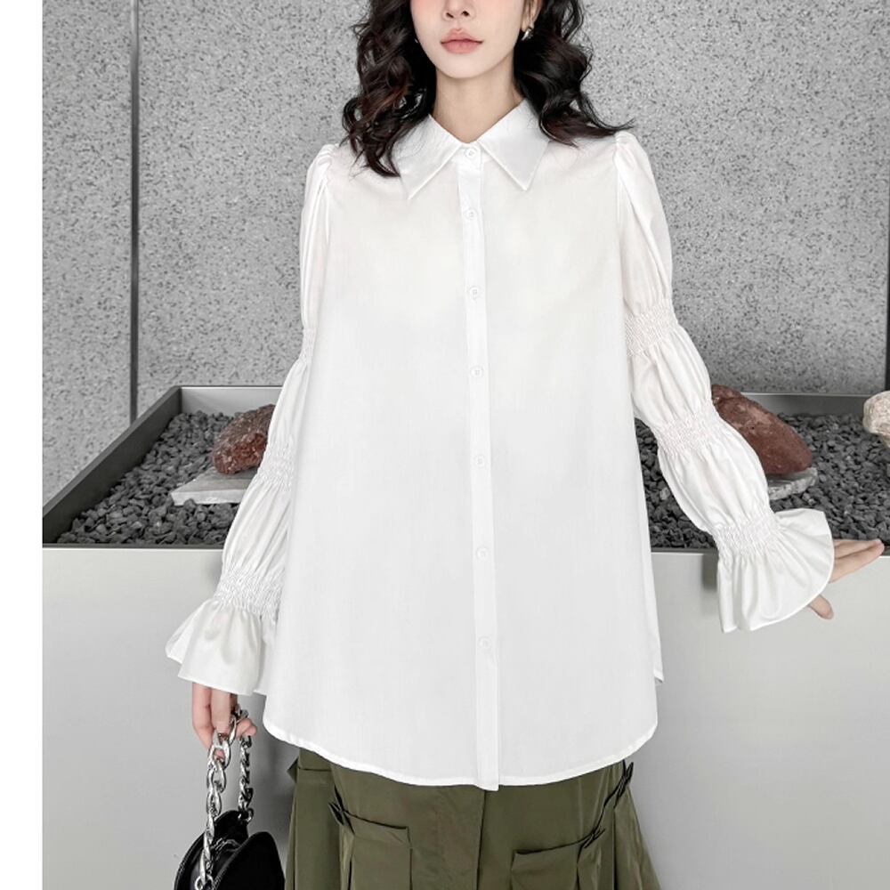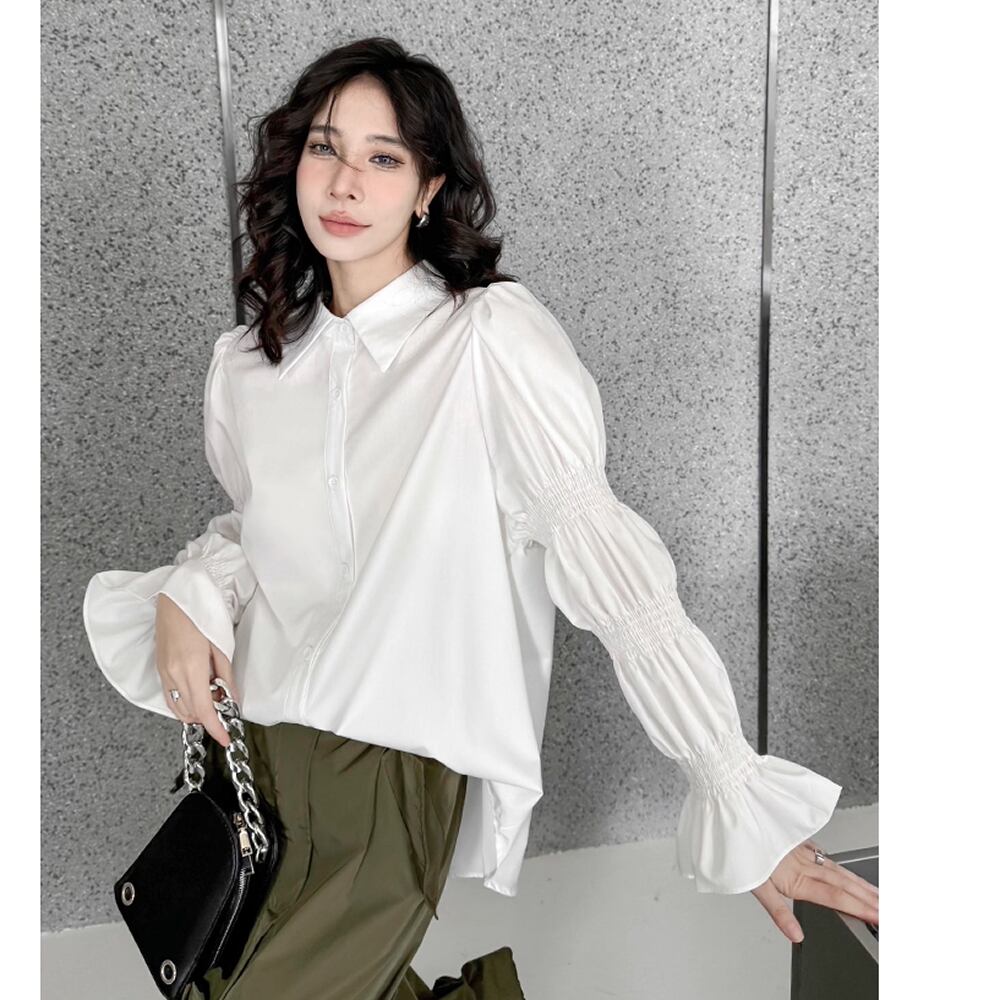 レディース ブラウス トップス パフスリーブ ホワイト 長袖 AS12555