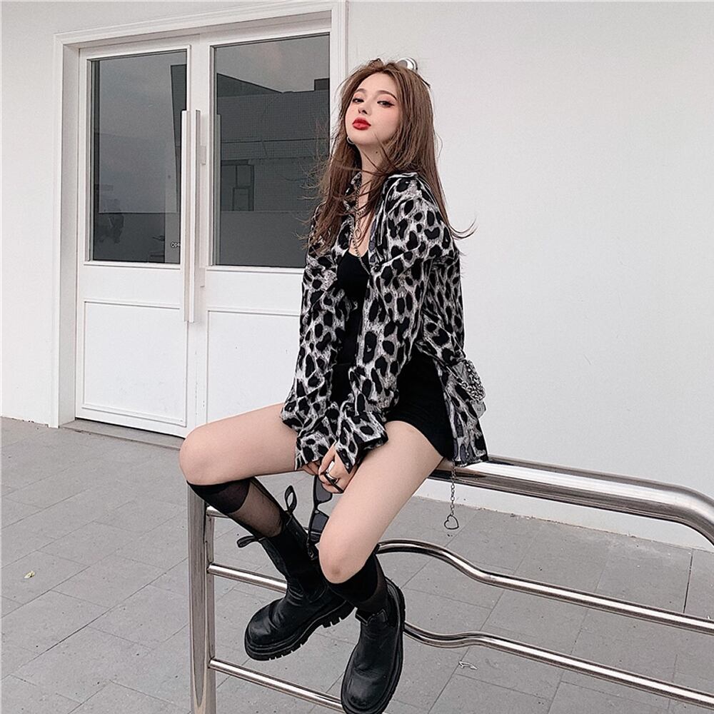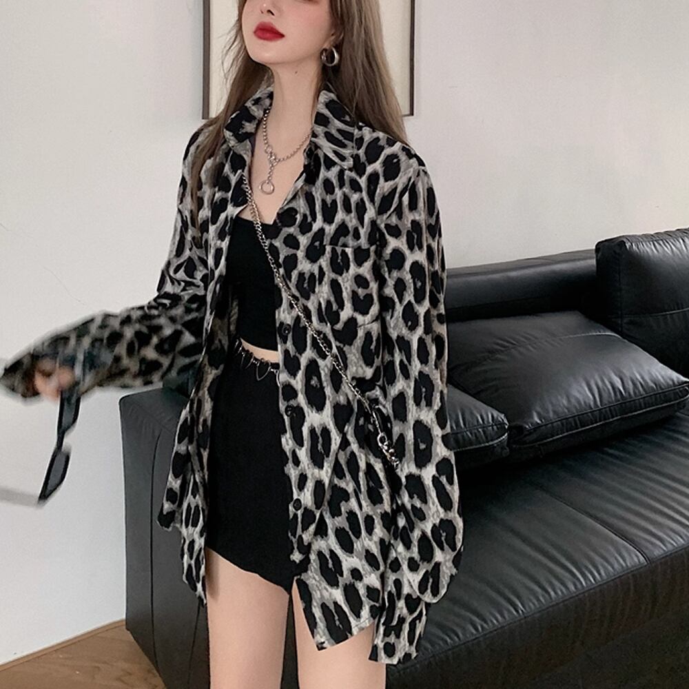 レディース ヒョウ柄 長袖 トップス シャツ ロング丈 大きいサイズ AS12566
