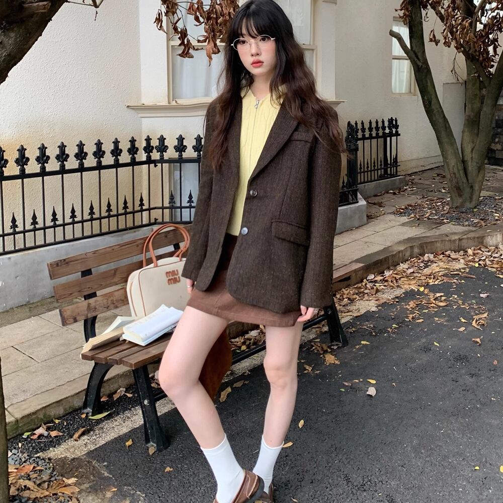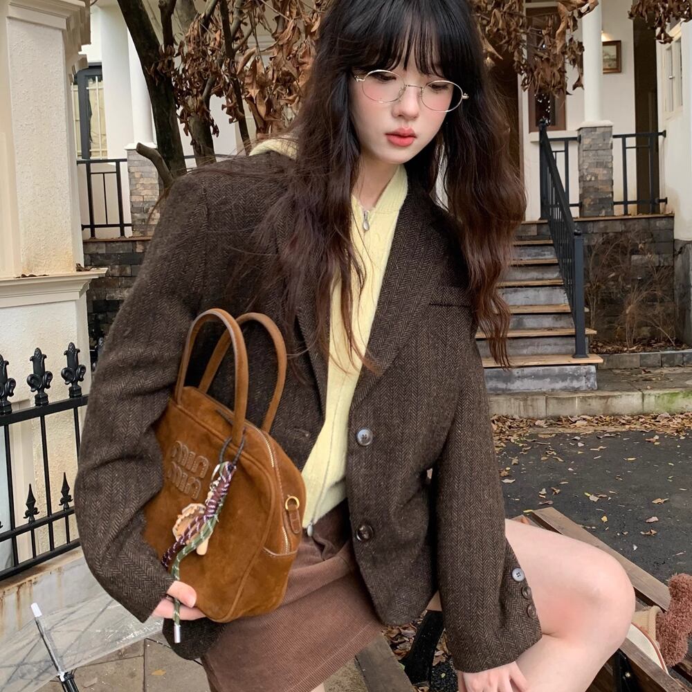 レディース テーラードジャケット アウター 長袖 グレー ダークブラウン AS12577