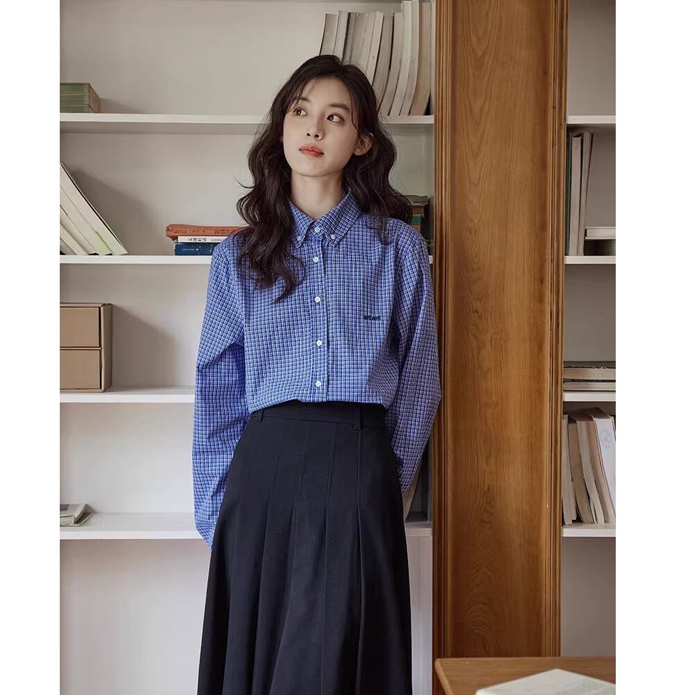 レディース チェック柄 トップス 長袖 シャツ ブルー AS12581