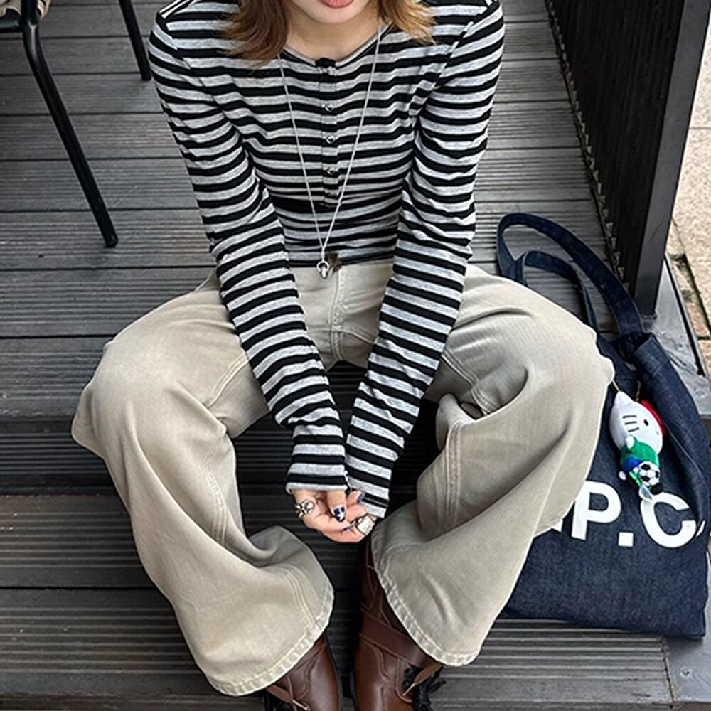 レディース ボーダー柄 長袖 トップス カットソー AS12585