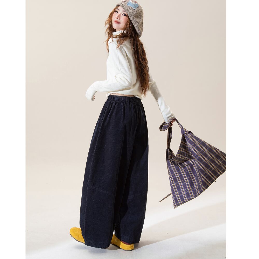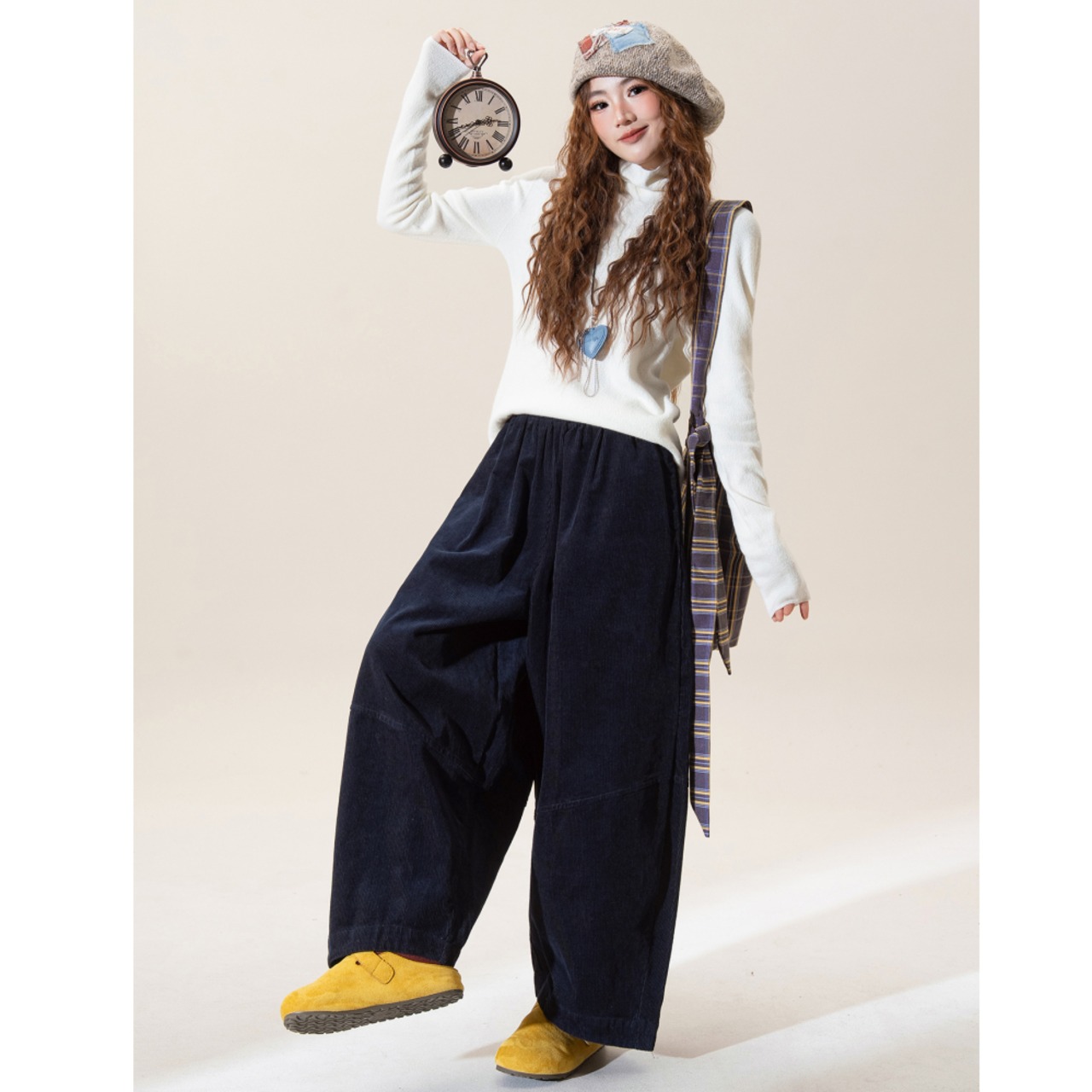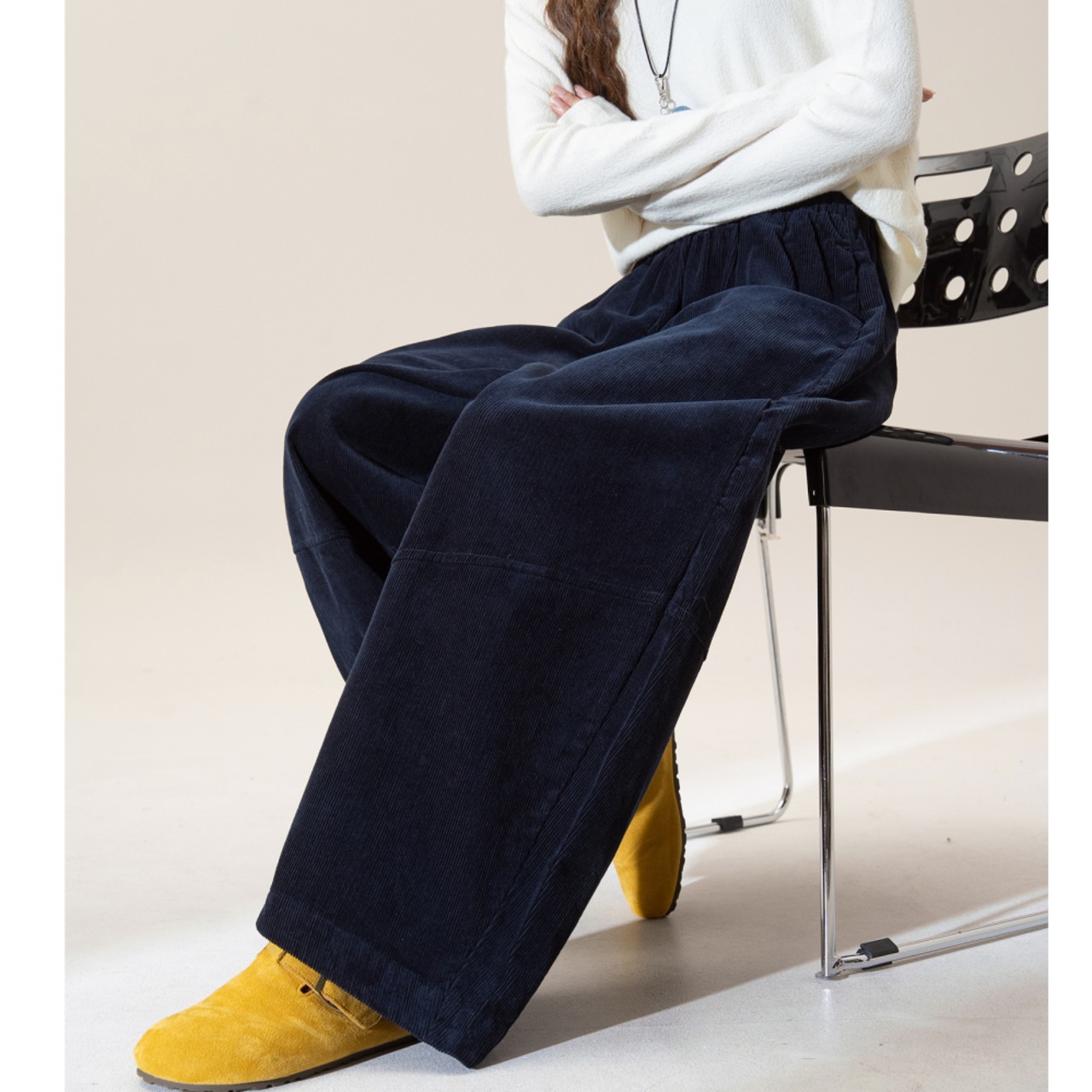 レディース コーデュロイ ワイドレッグパンツ ネイビー AS12607