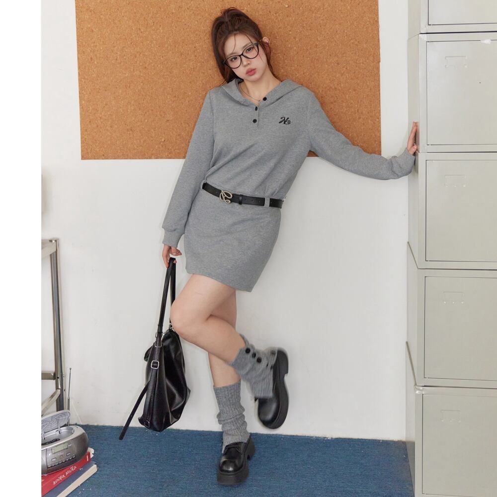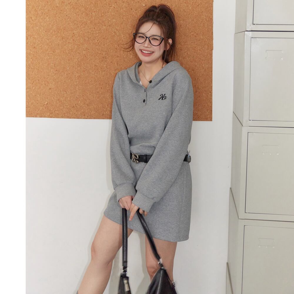 レディース フード付き ワンピース 長袖 ミニ丈 グレー 大きいサイズ AS12618