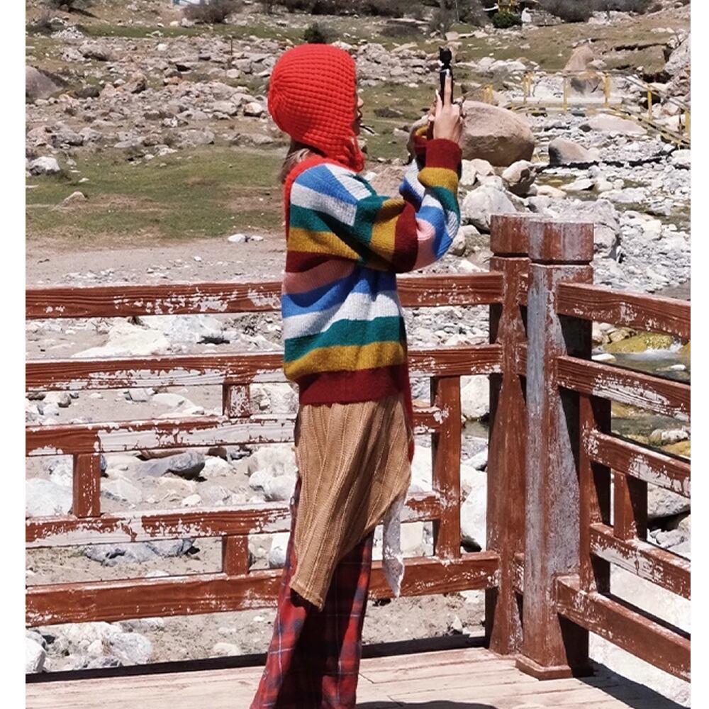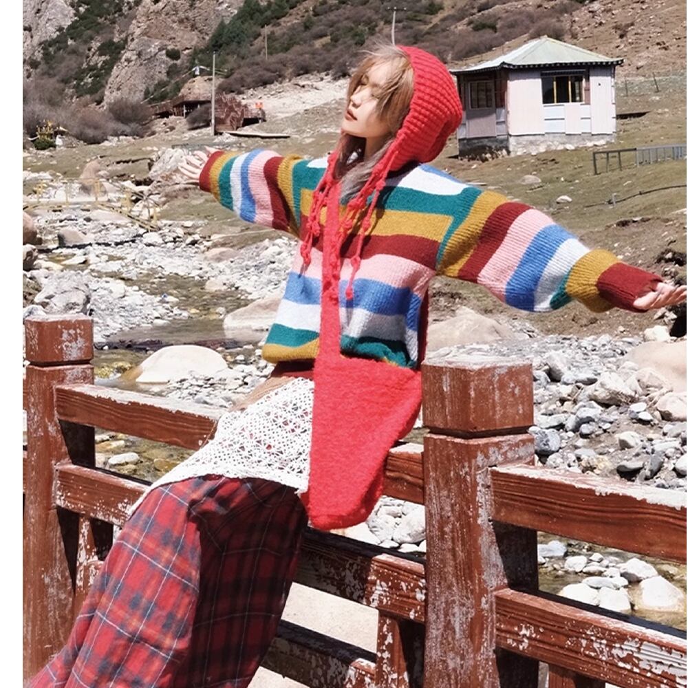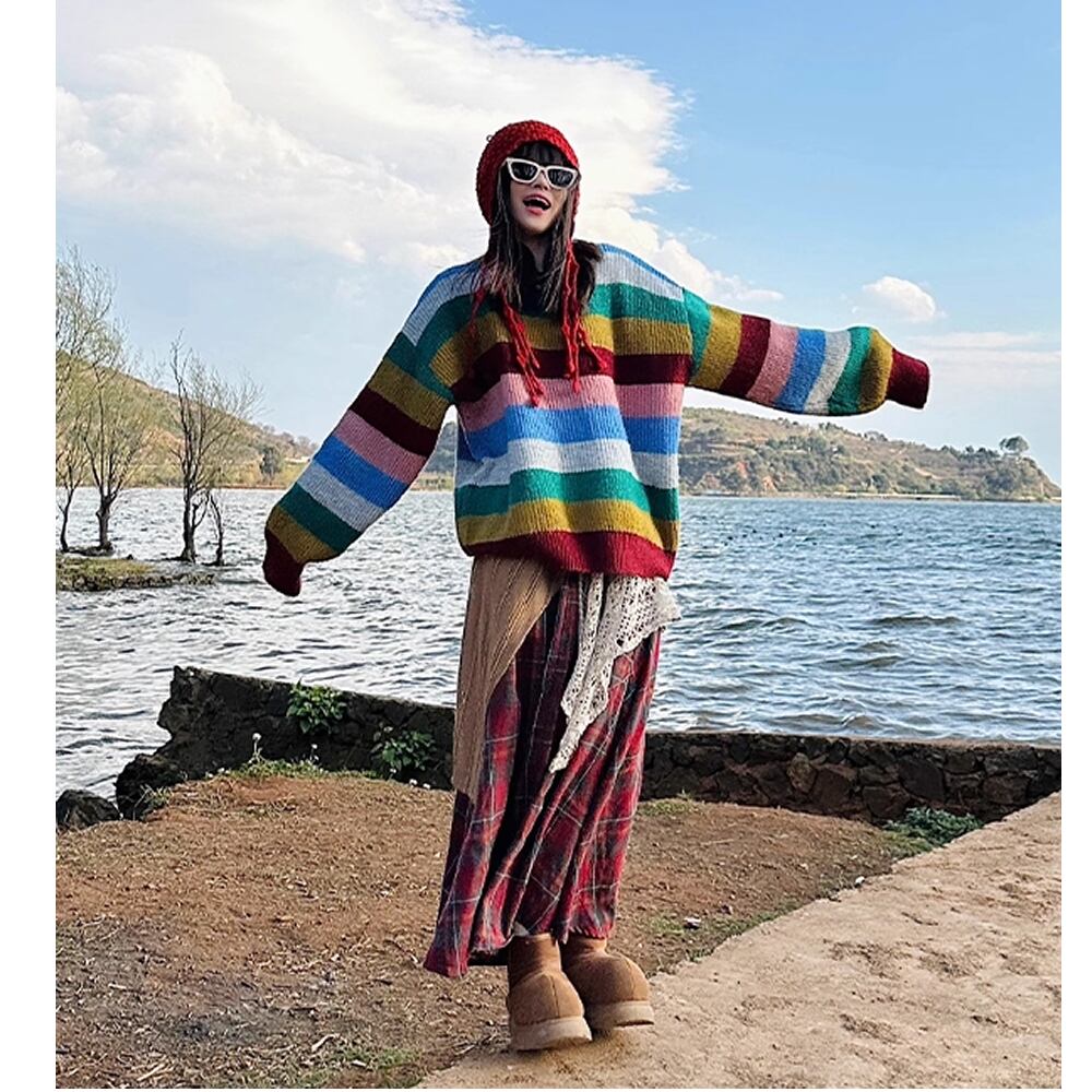 レディース カラフル ボーダー柄 長袖 セーター トップス AS12631