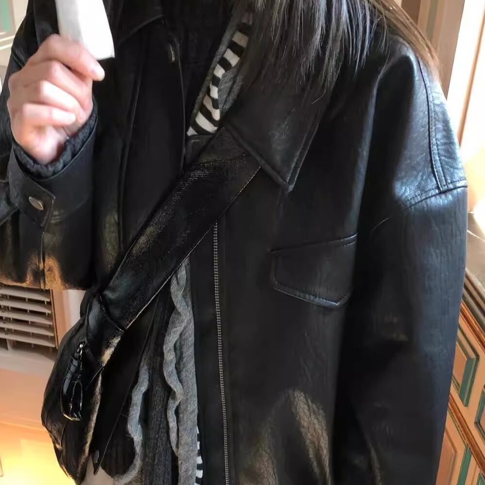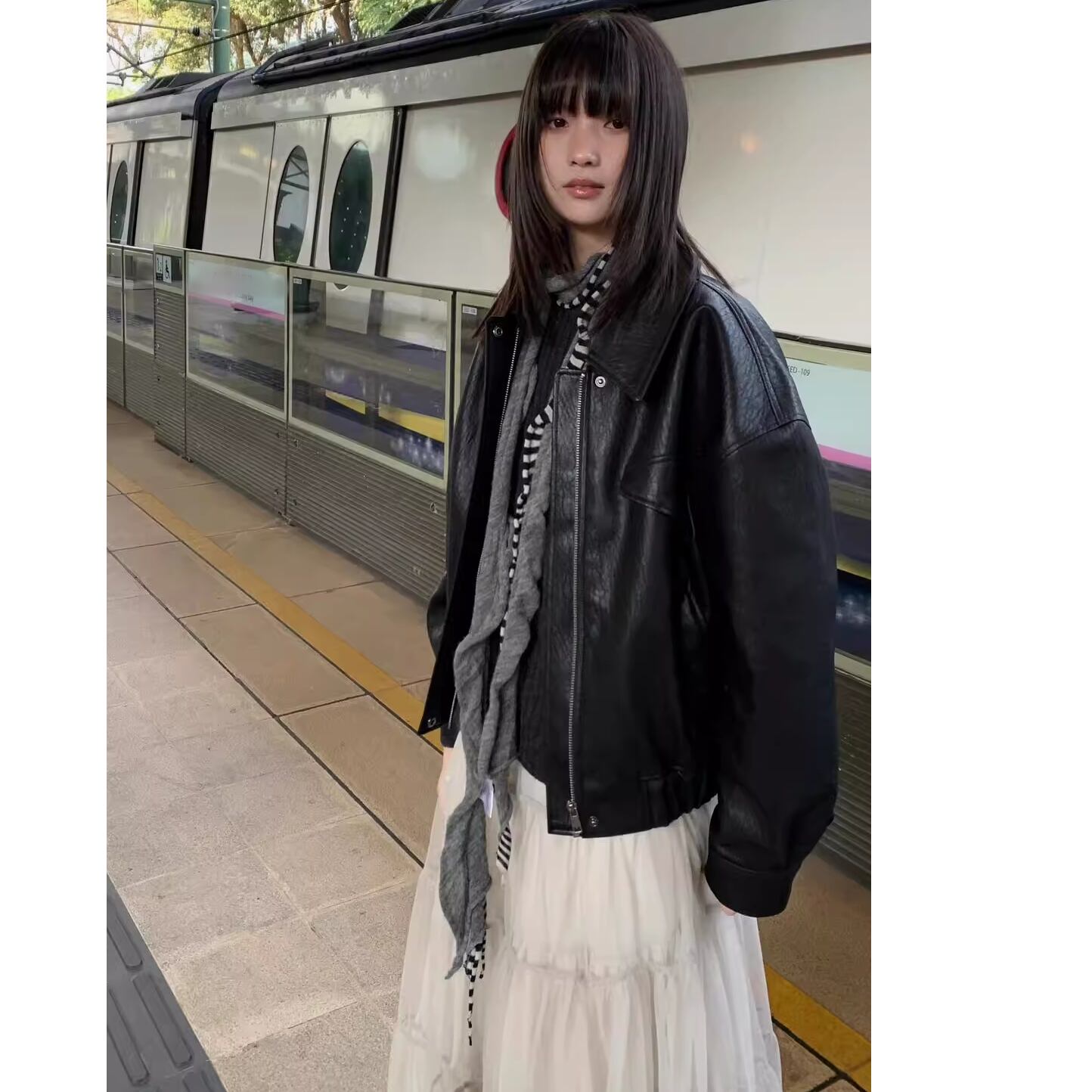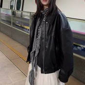 レディース フェイクレザー ジャケット アウター ブラック AS12633