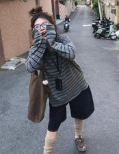 レディース 長袖 ストライプ Tシャツ ロンT オーバーサイズ ビックシルエット KS10437