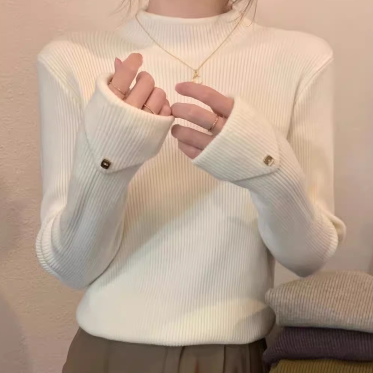ハイネックのセーター。