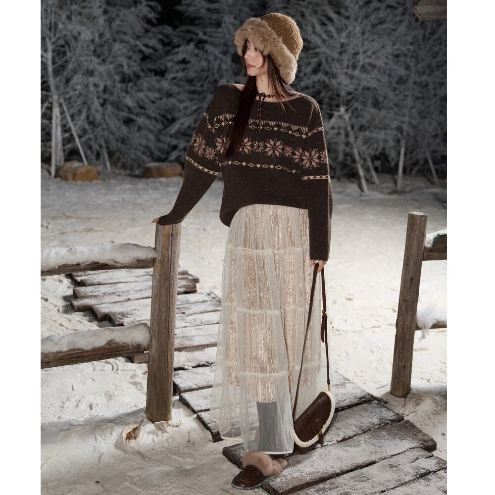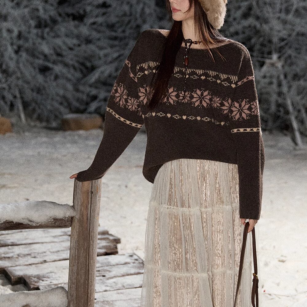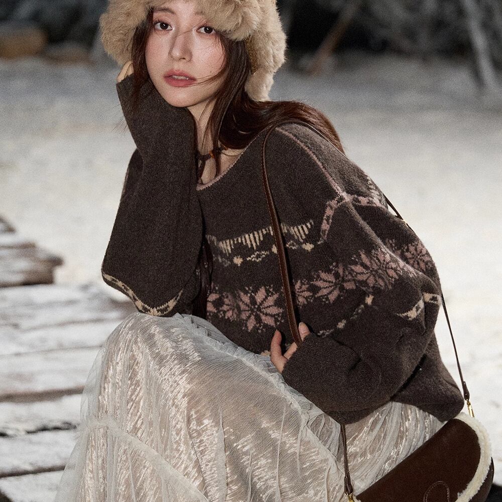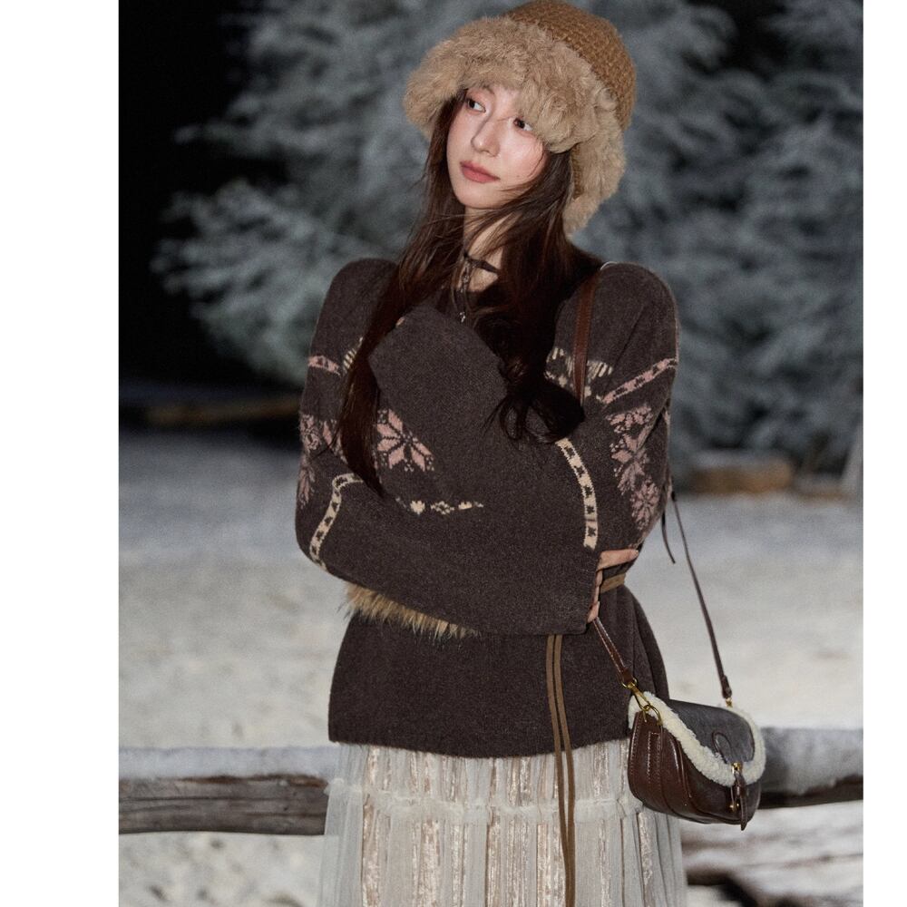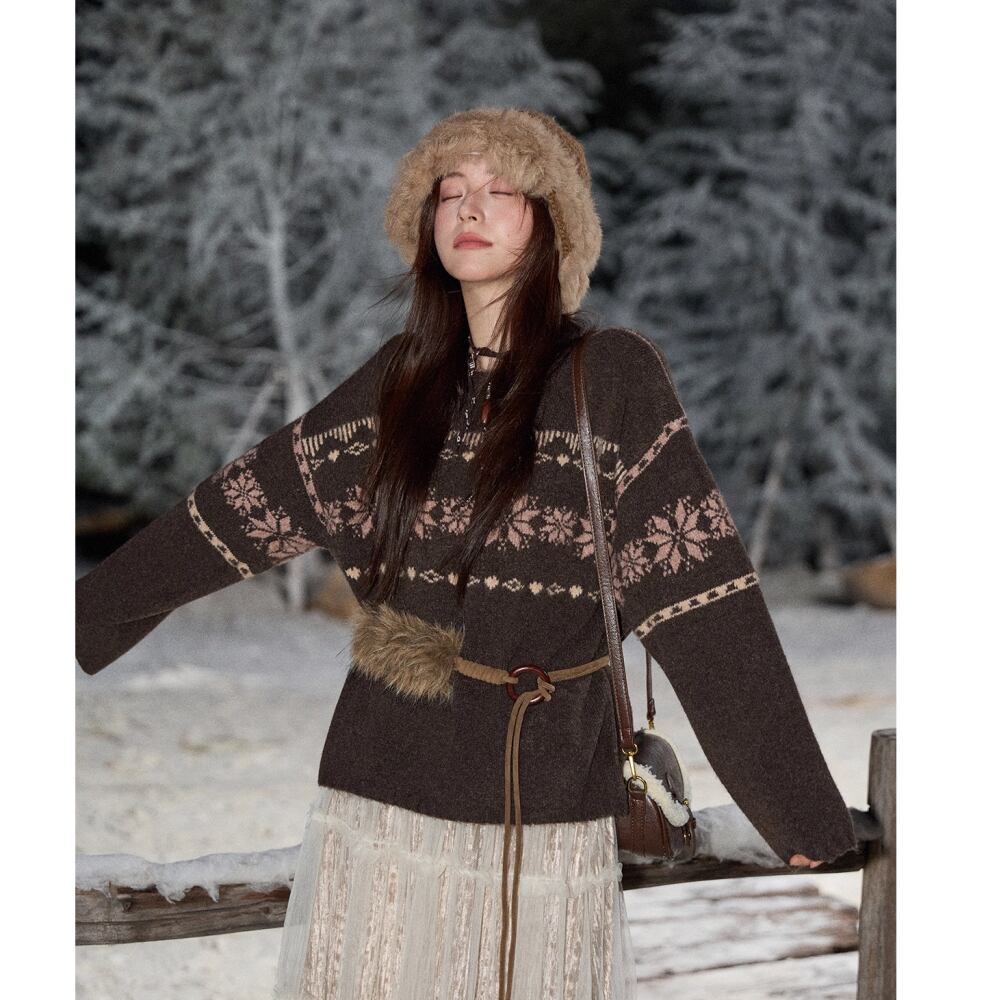 レディース フェアアイル トップス セーター 長袖 ブラウン AS12675