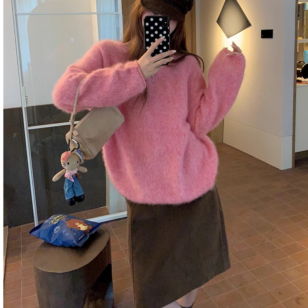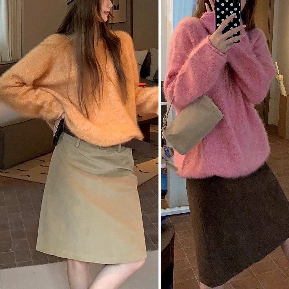 レディース セーター トップス 長袖 オレンジ ピンク AS12683