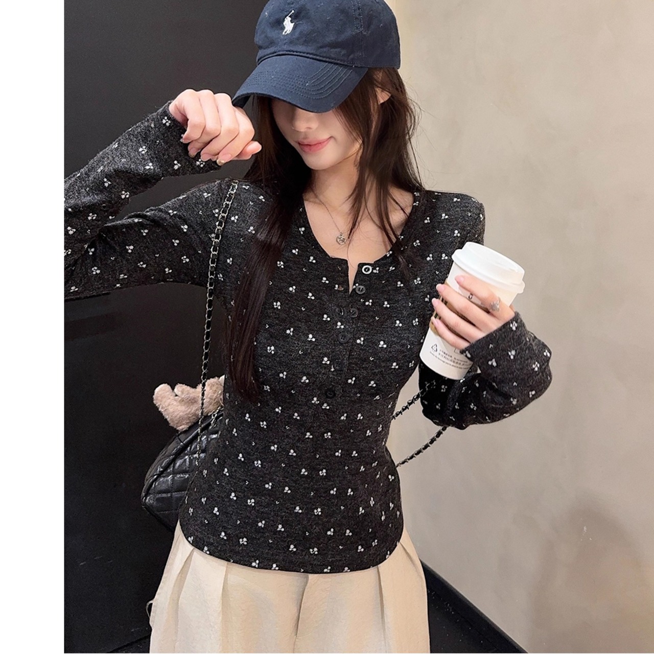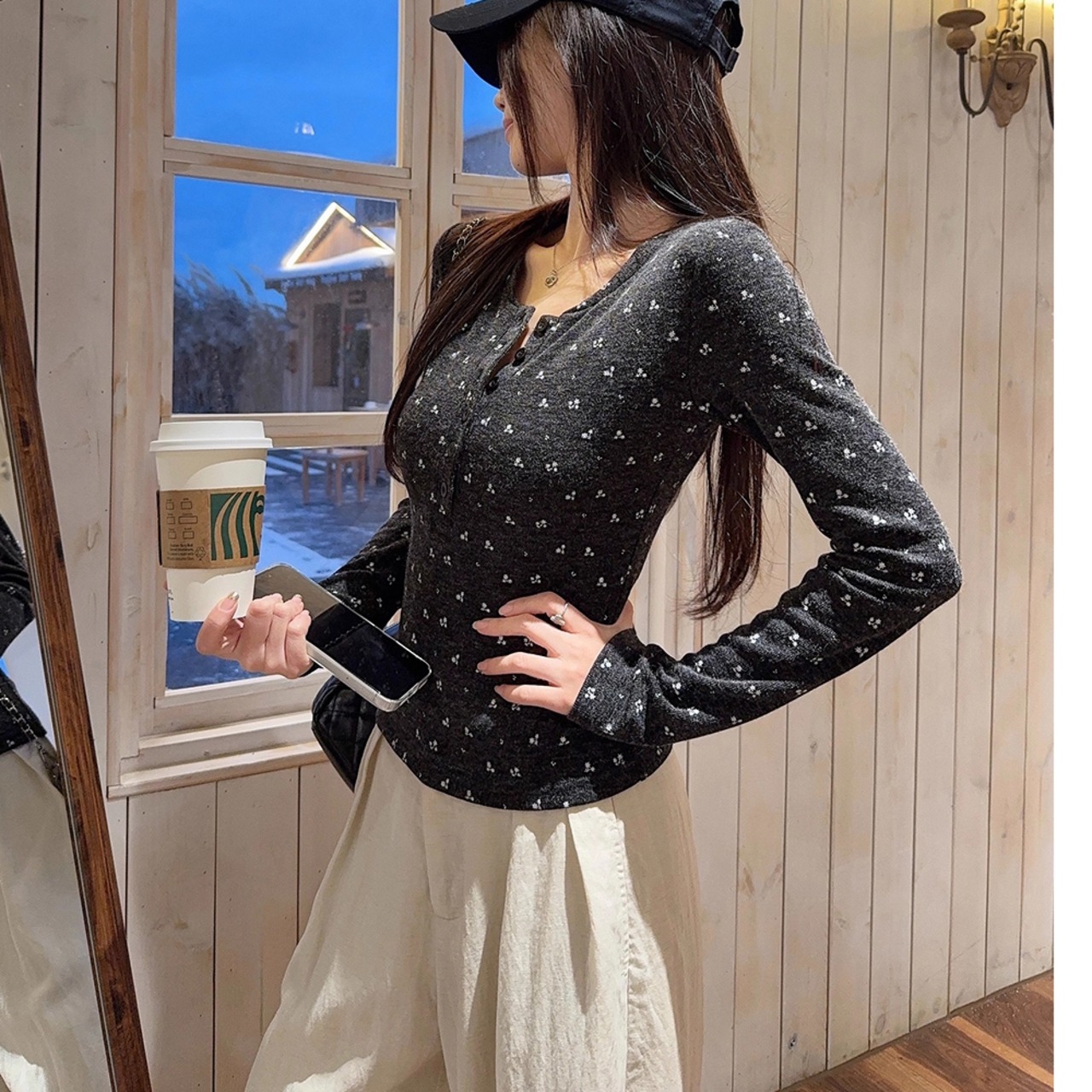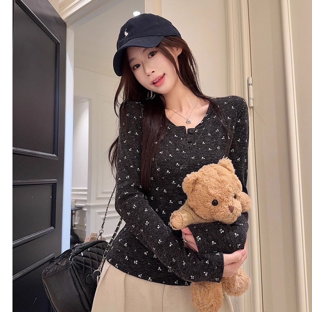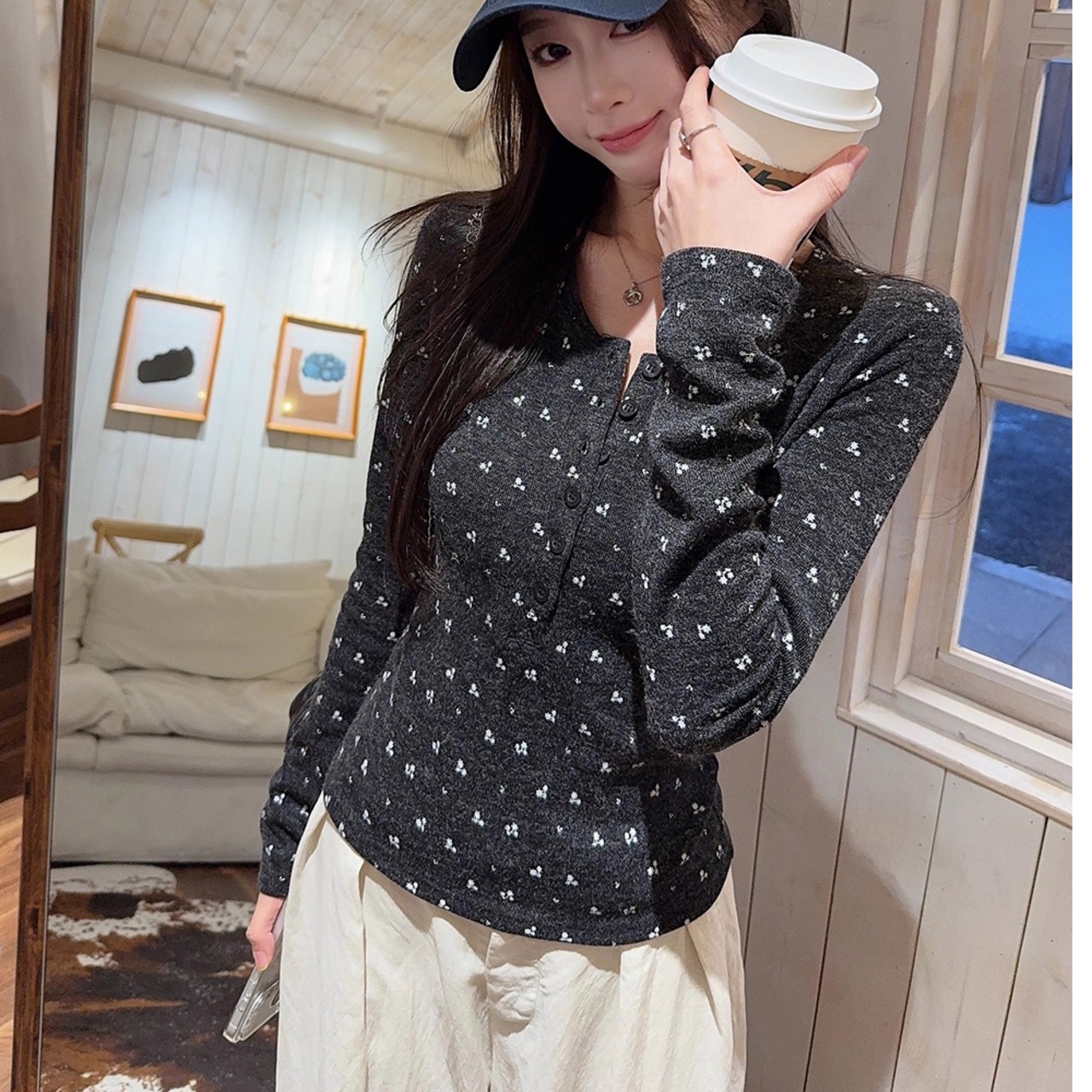 花柄の長袖トップス。