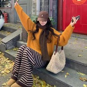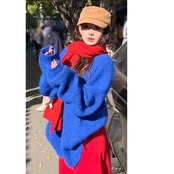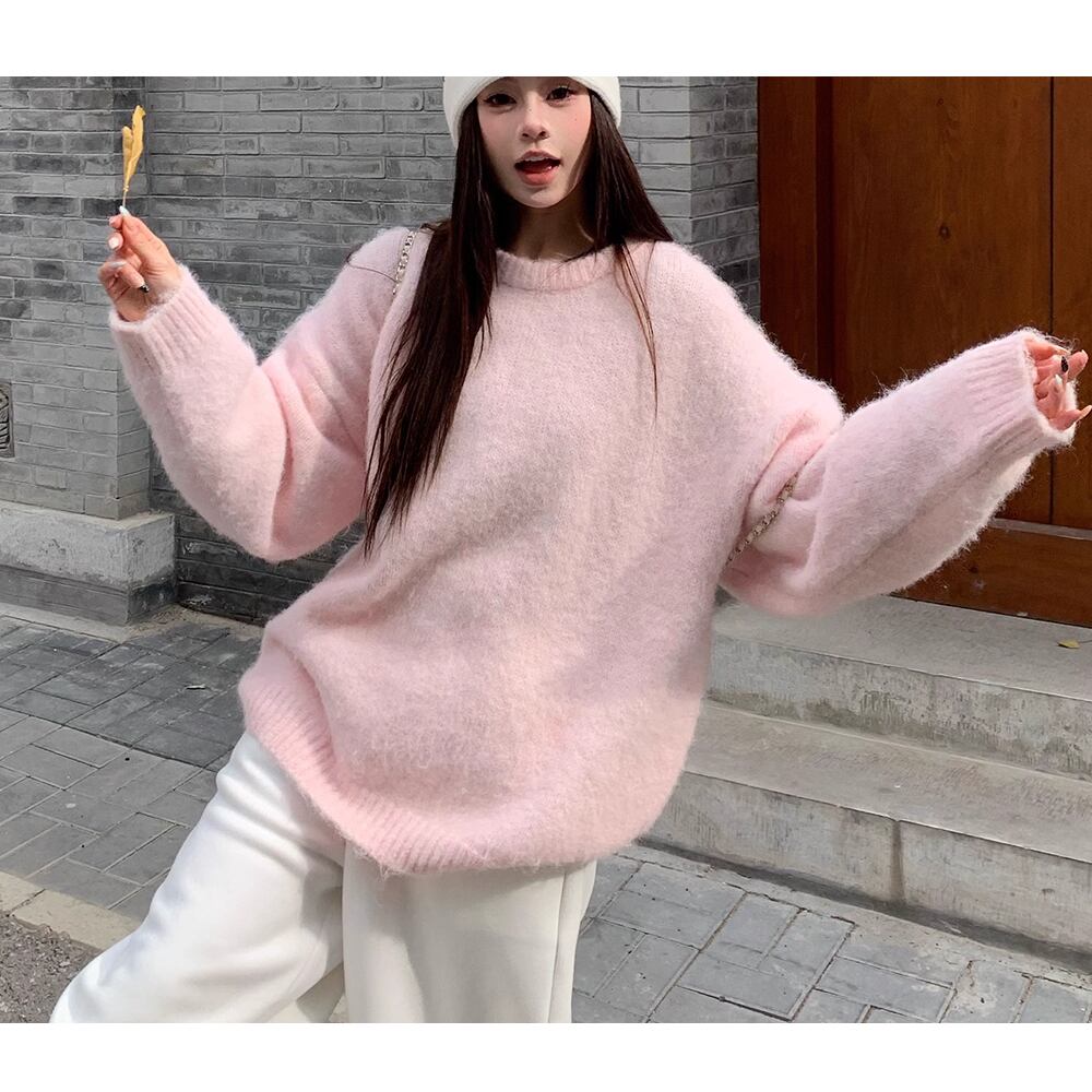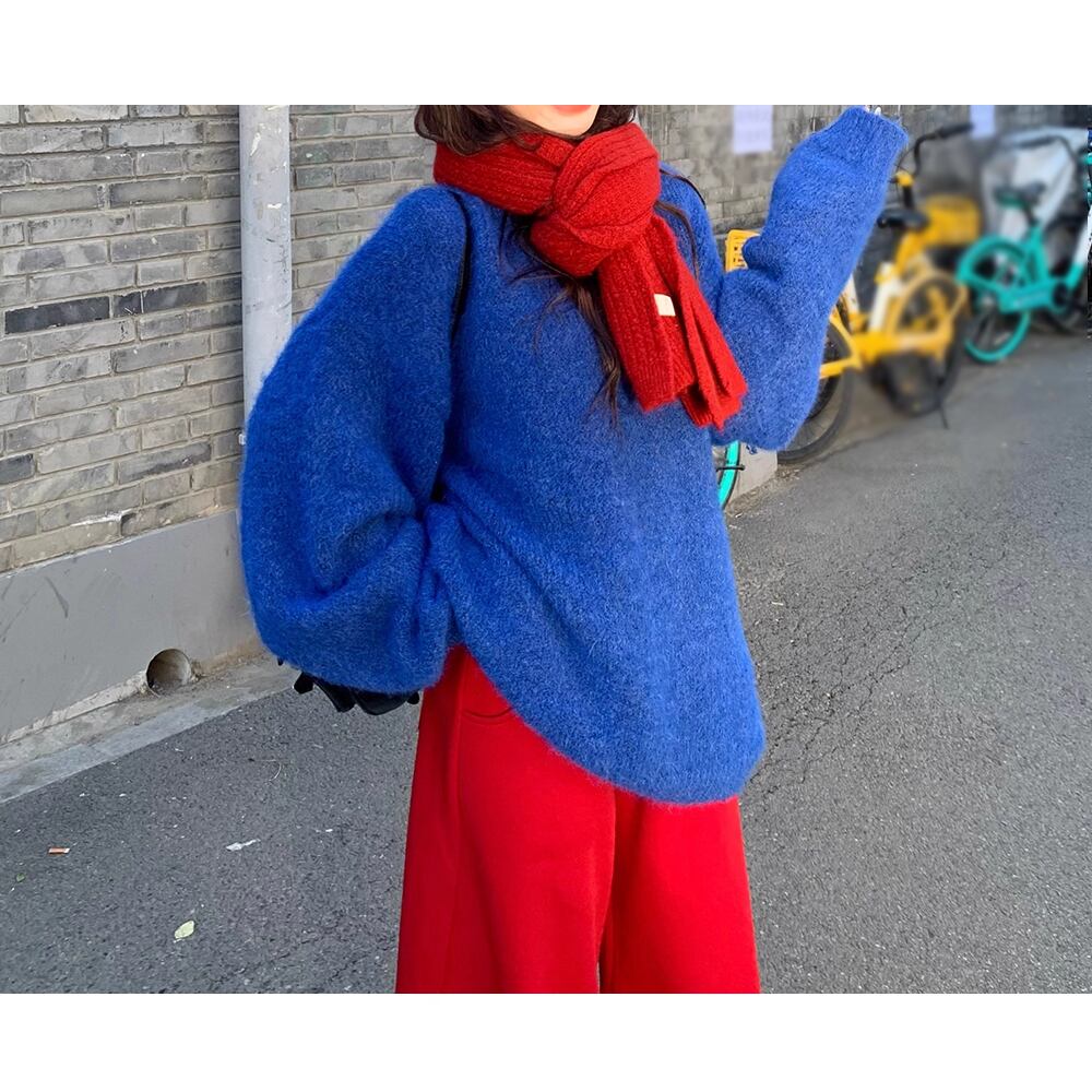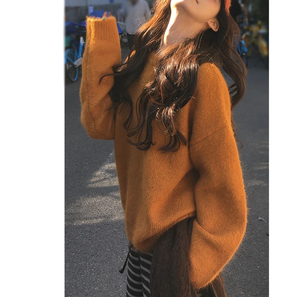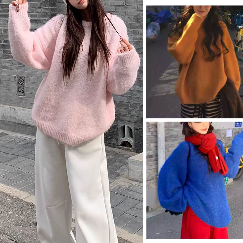 レディース クルーネック トップス セーター オレンジ ブルー ピンク AS12716