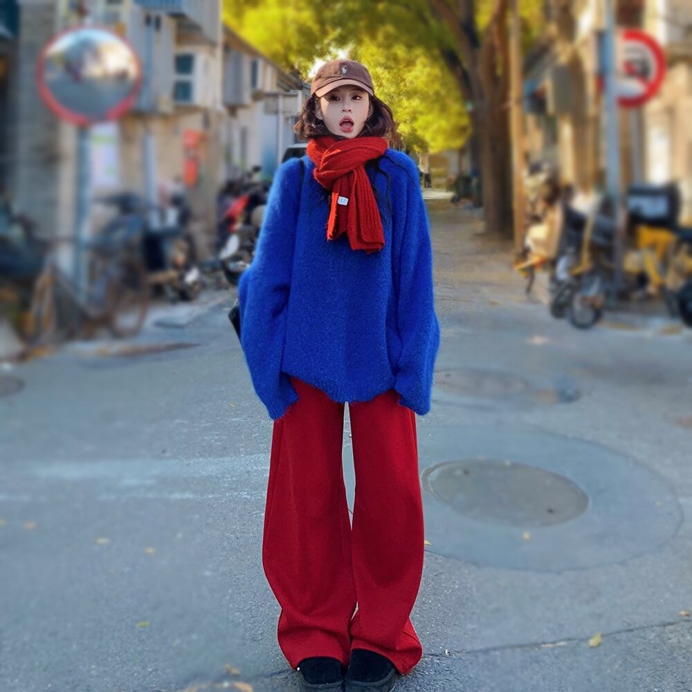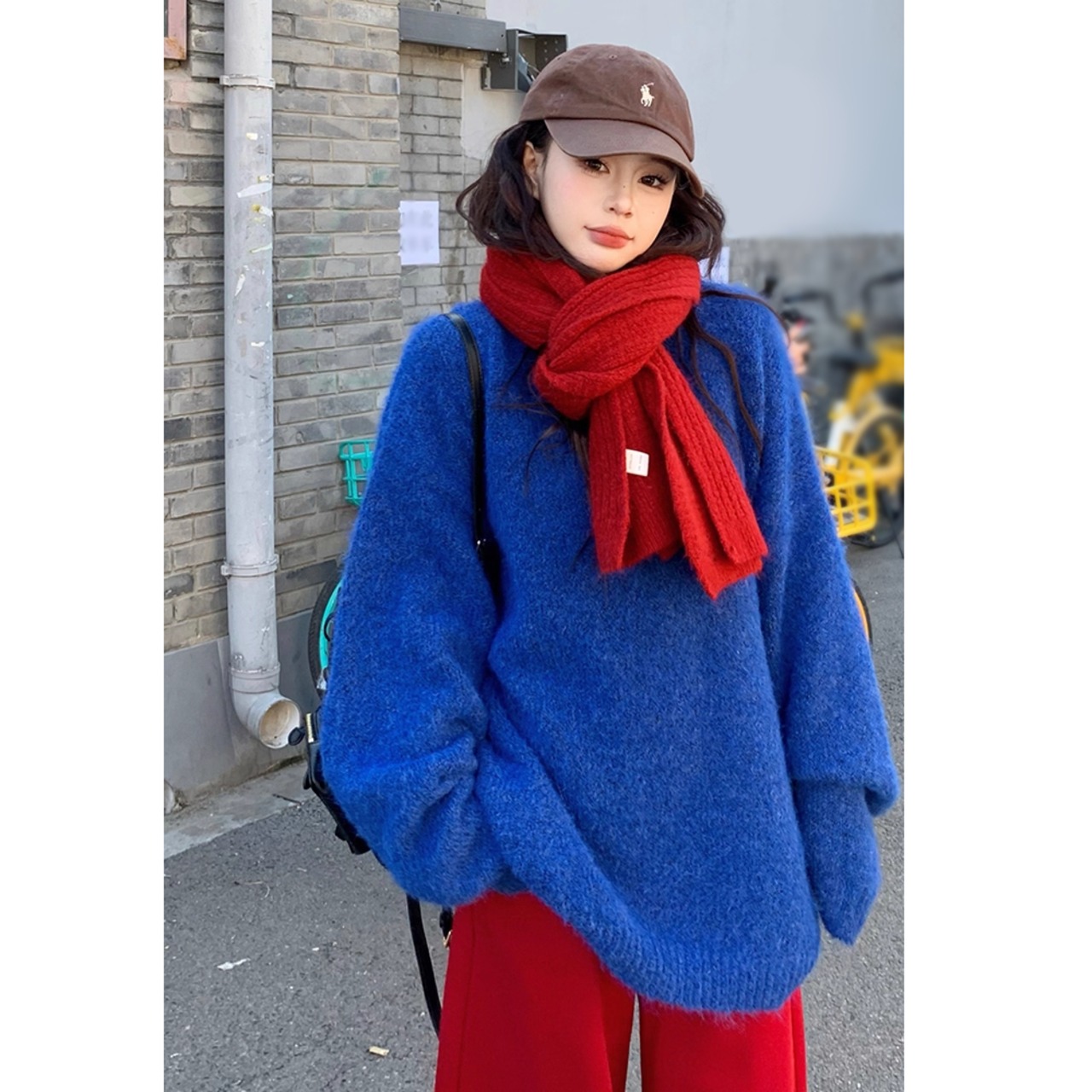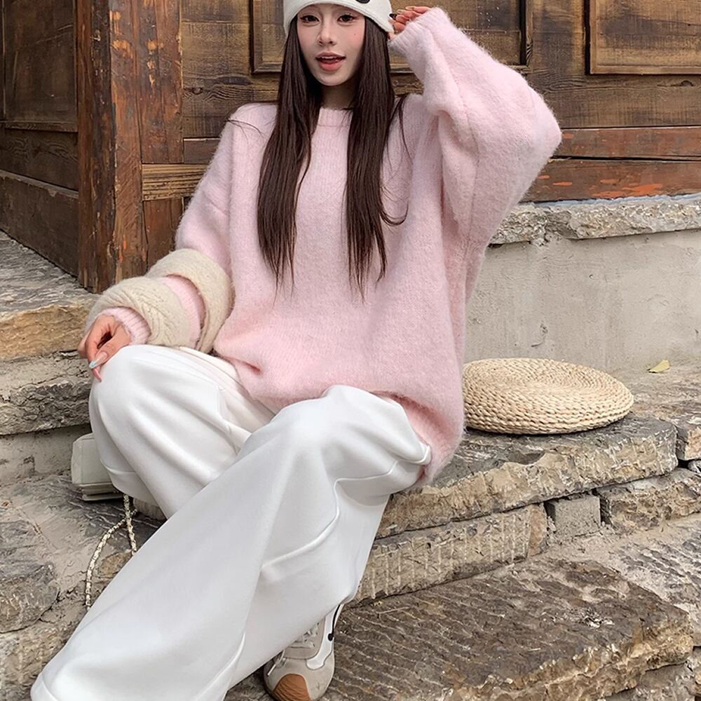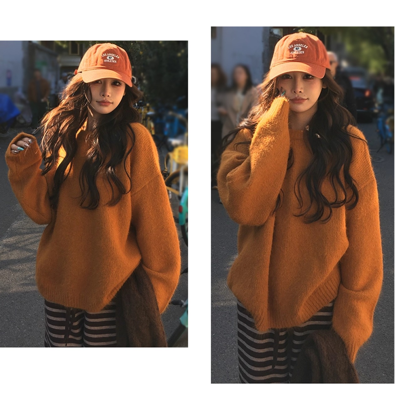 レディース クルーネック トップス セーター オレンジ ブルー ピンク AS12716