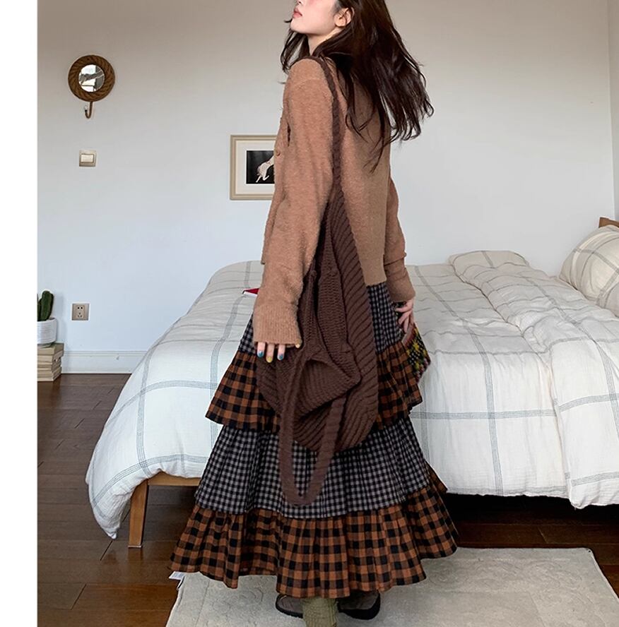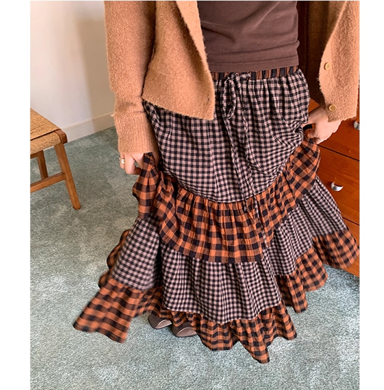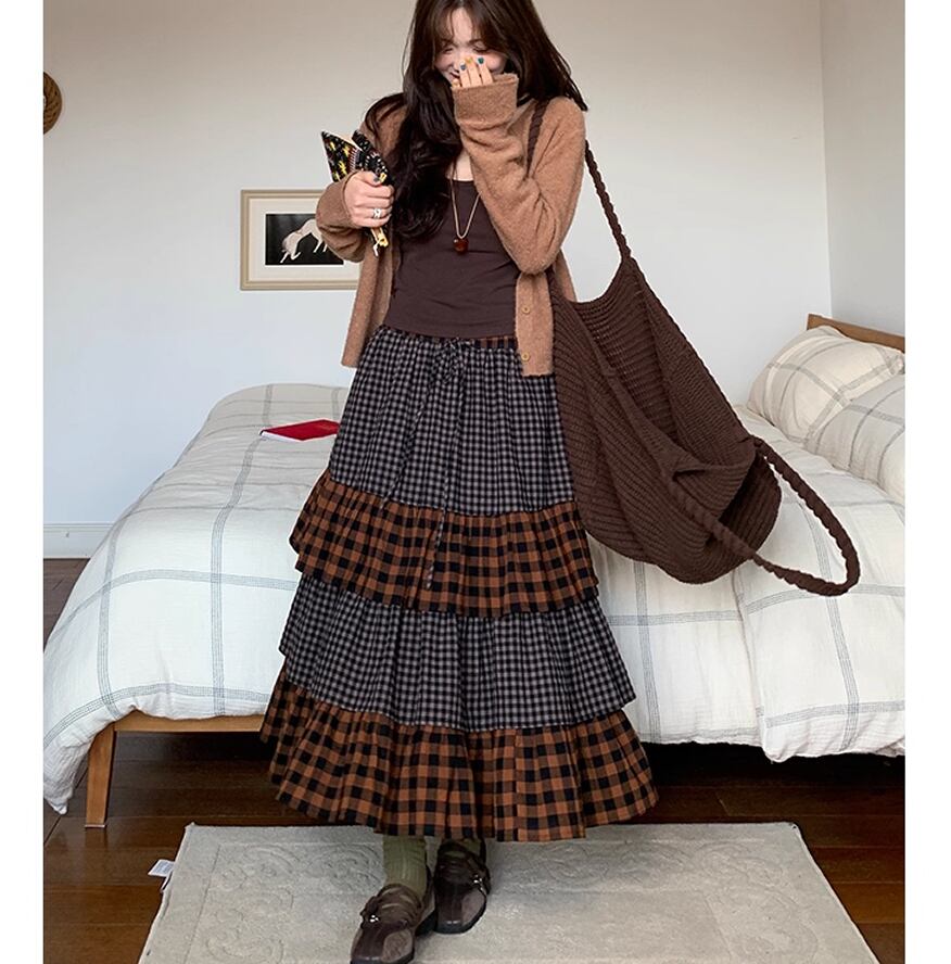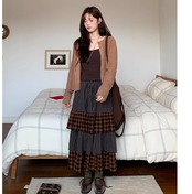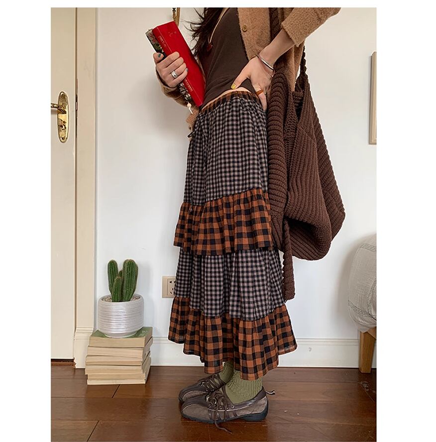 レディース チェック柄 ロングスカート ケーキスカート AS12730