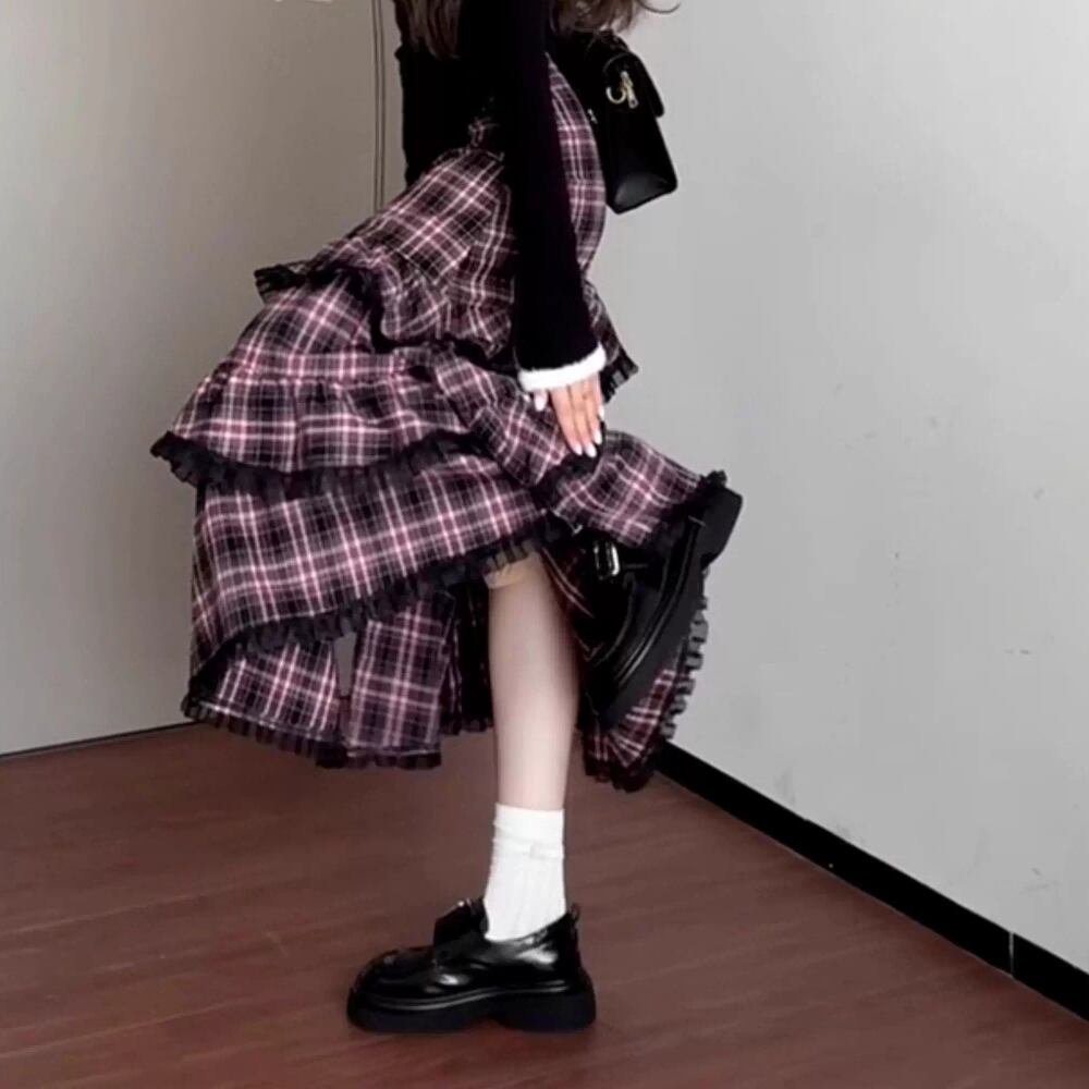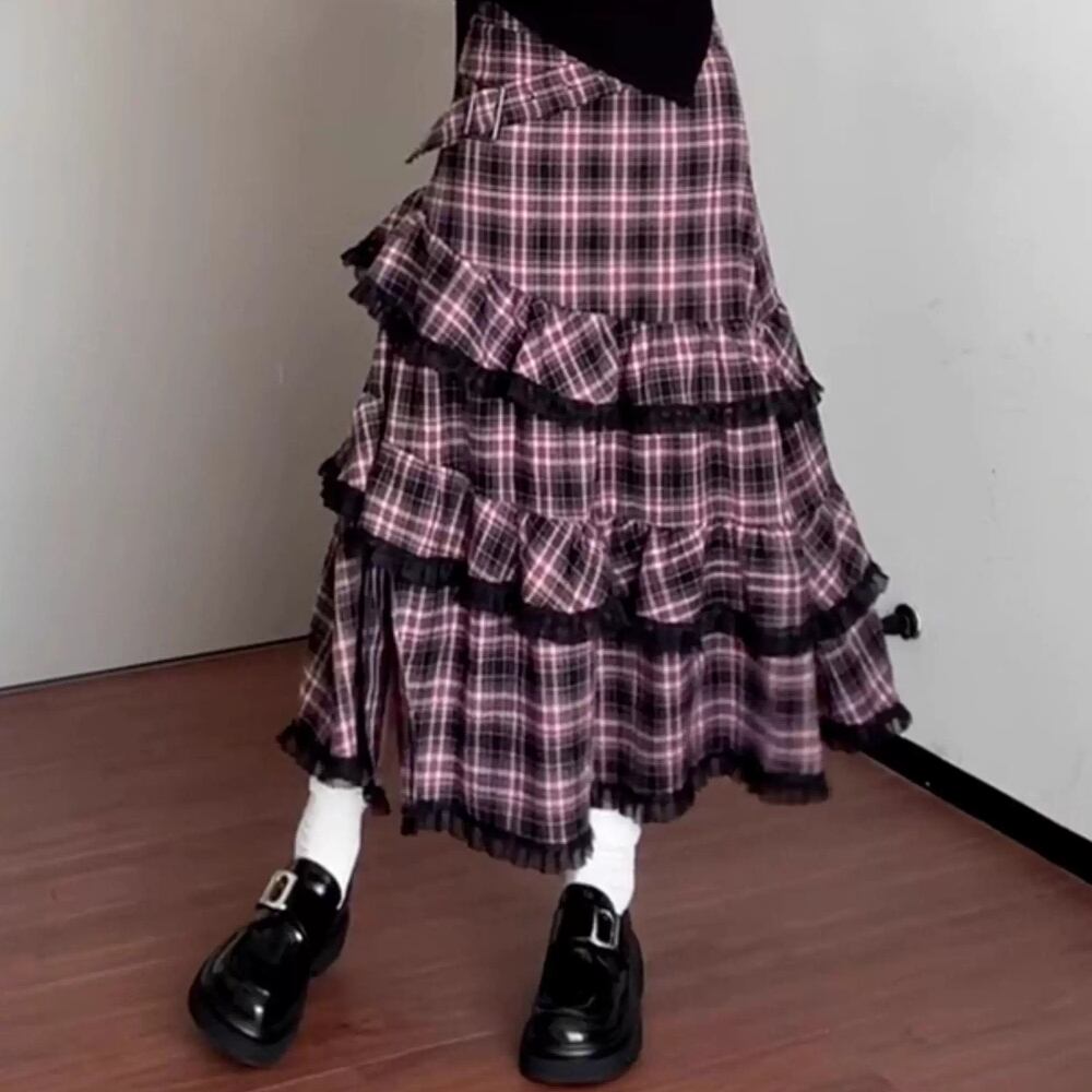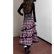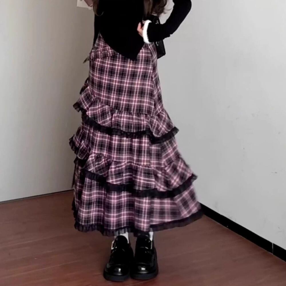 レディース チェック柄 フリル ロングスカート ケーキスカート AS12731