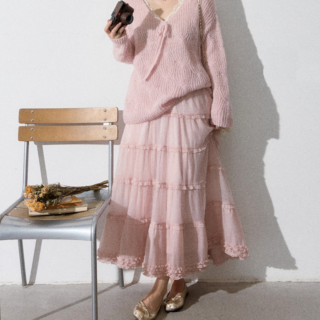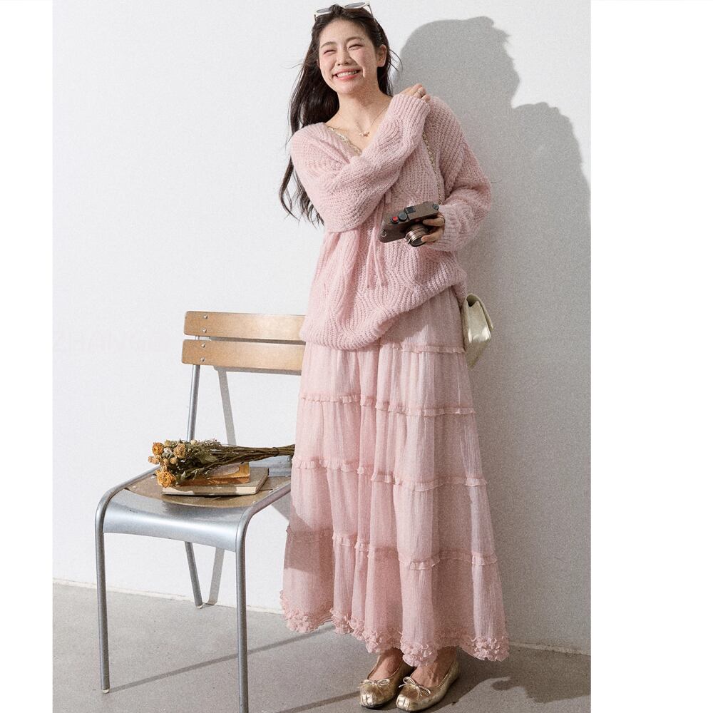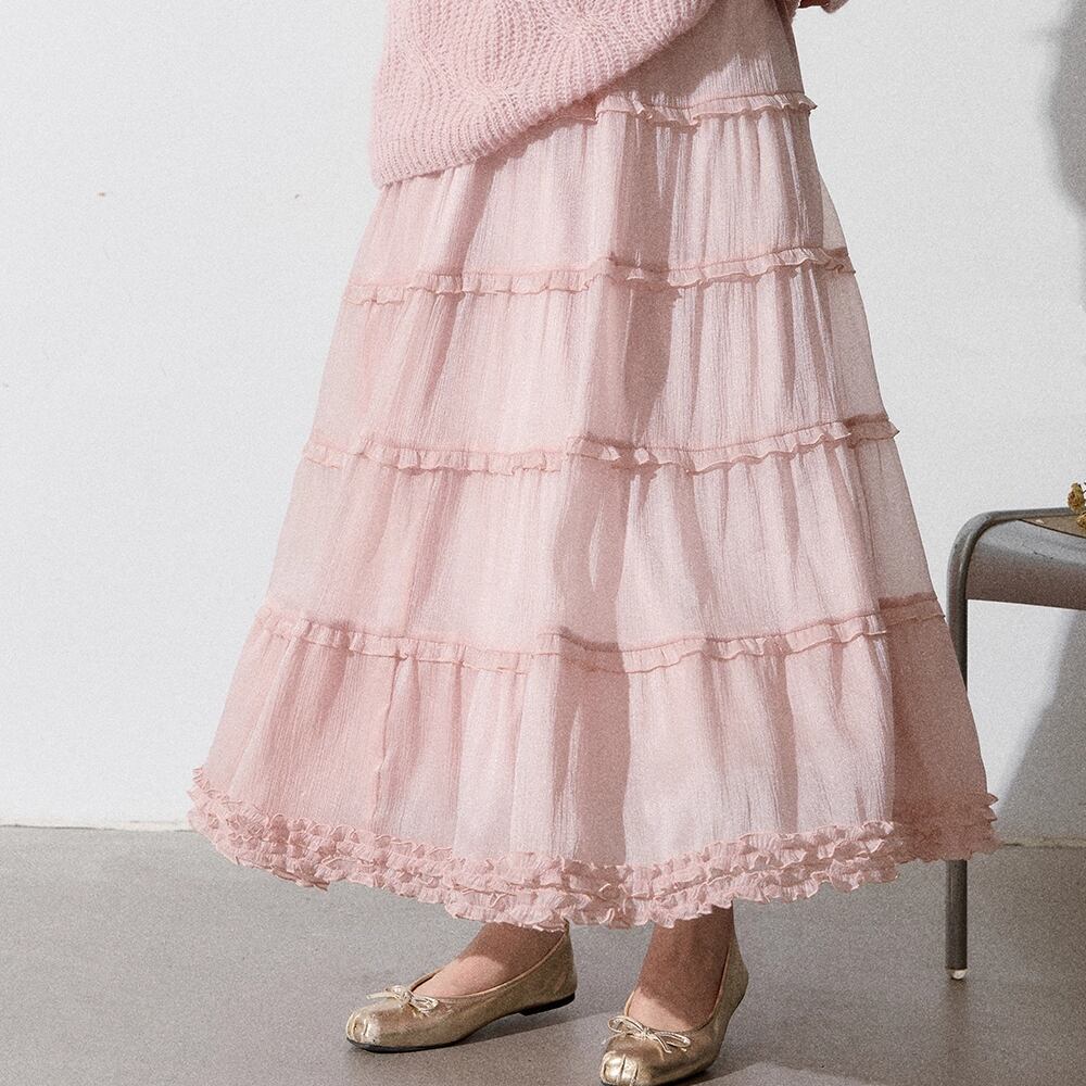 レディース フリル ロングスカート ピンク 大きいサイズ AS12739
