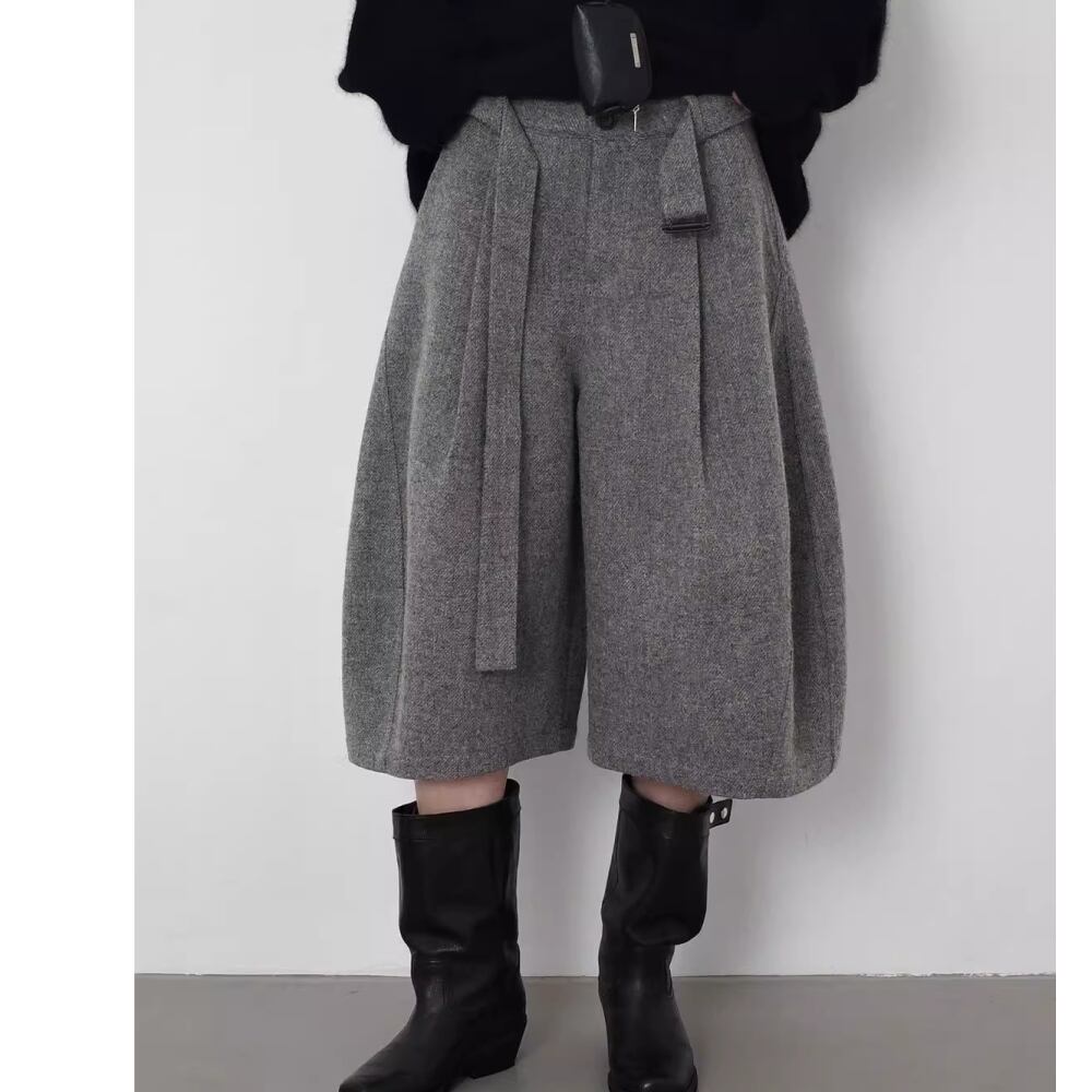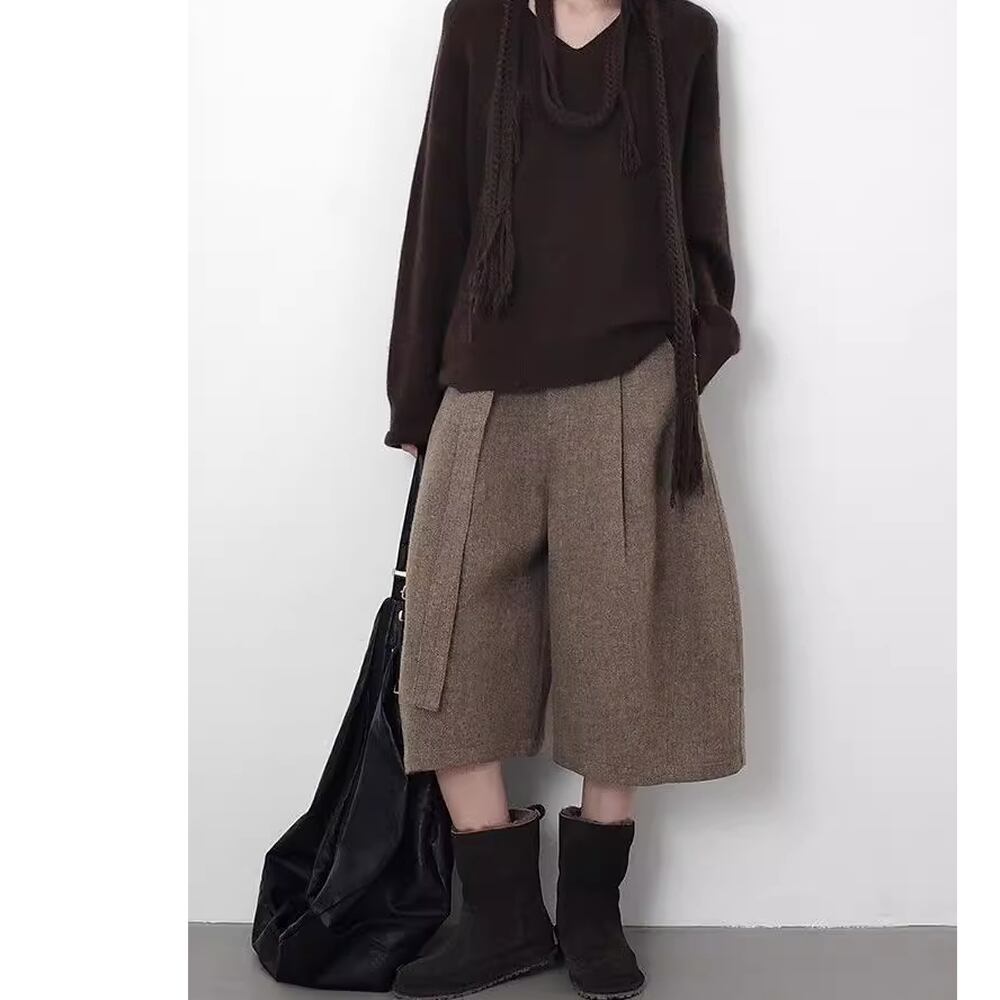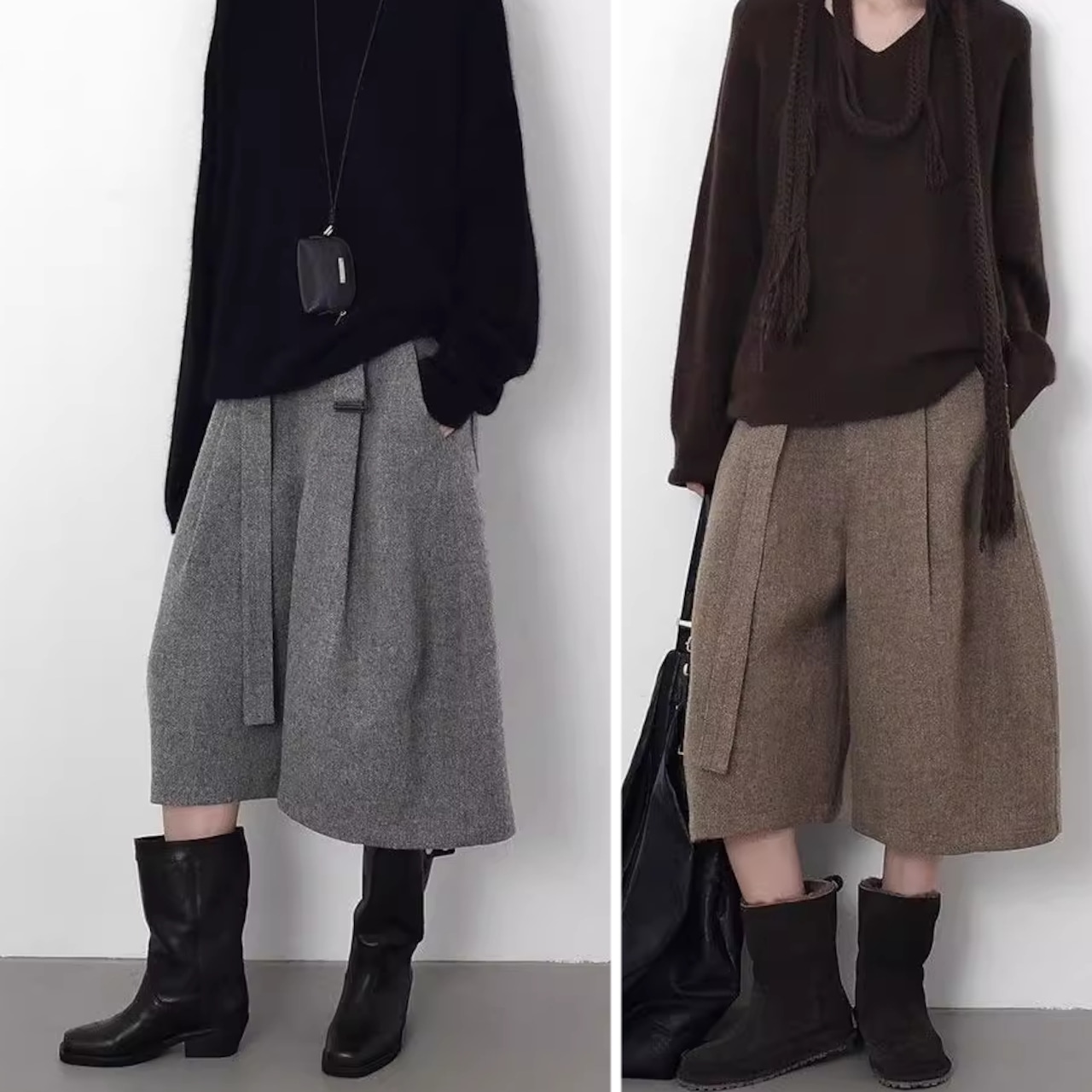 レディース クロップドパンツ ハーフパンツ ブラウン グレー ワイドレッグ AS12741