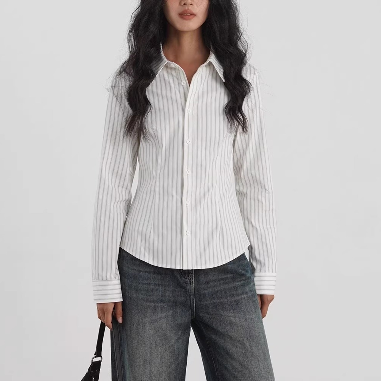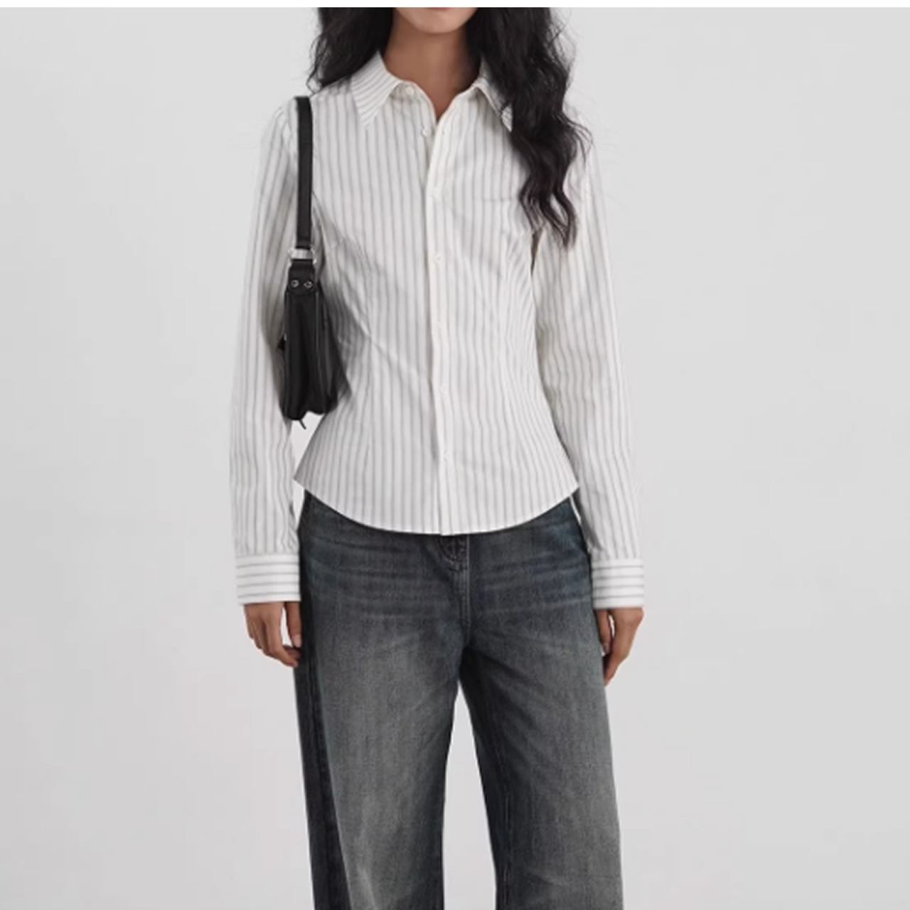 レディース ストライプ柄 長袖 トップス シャツ ホワイト AS12746