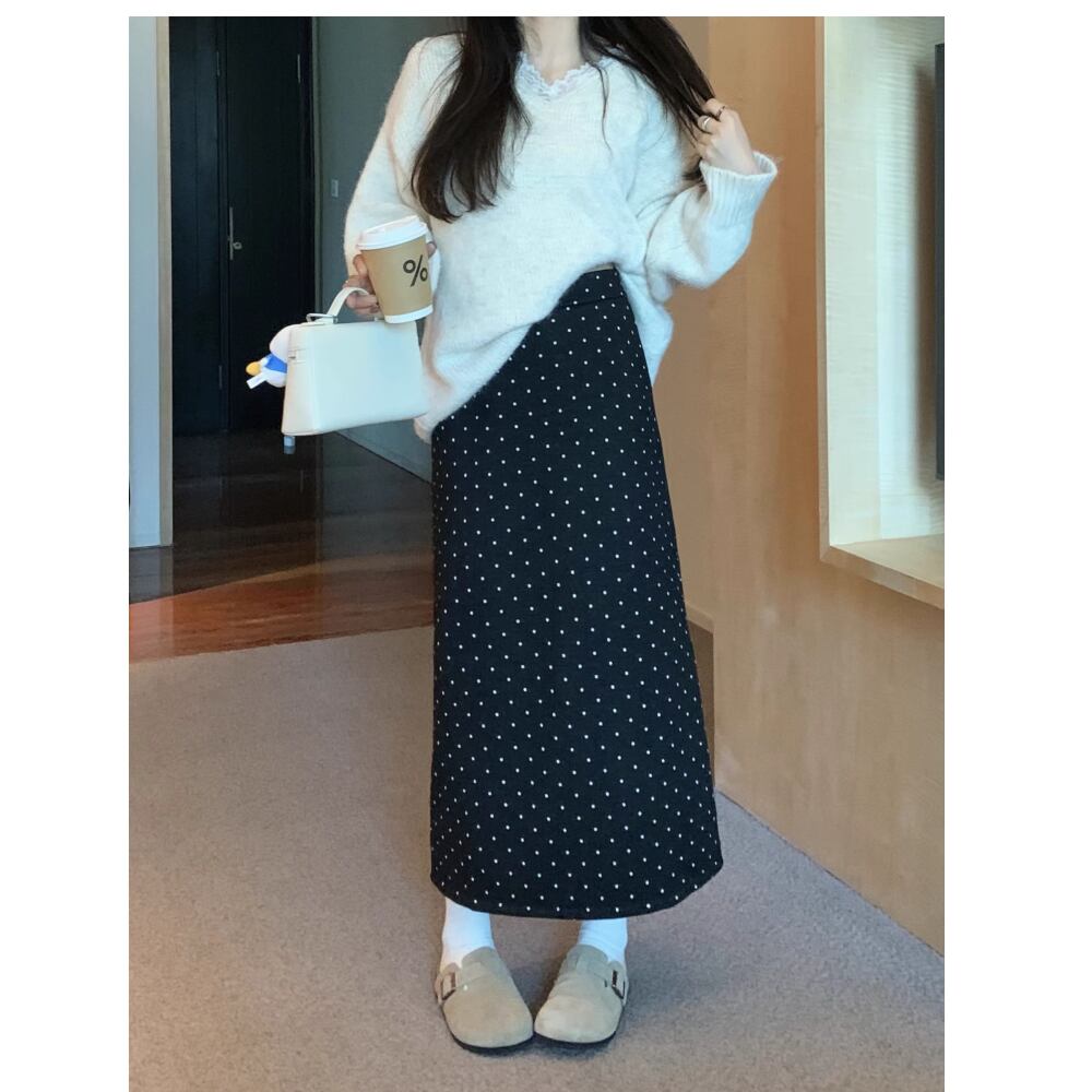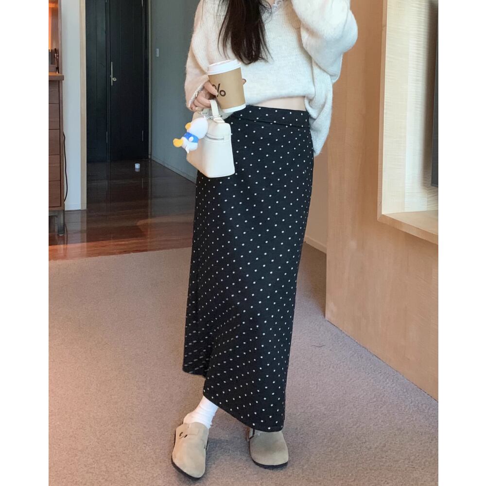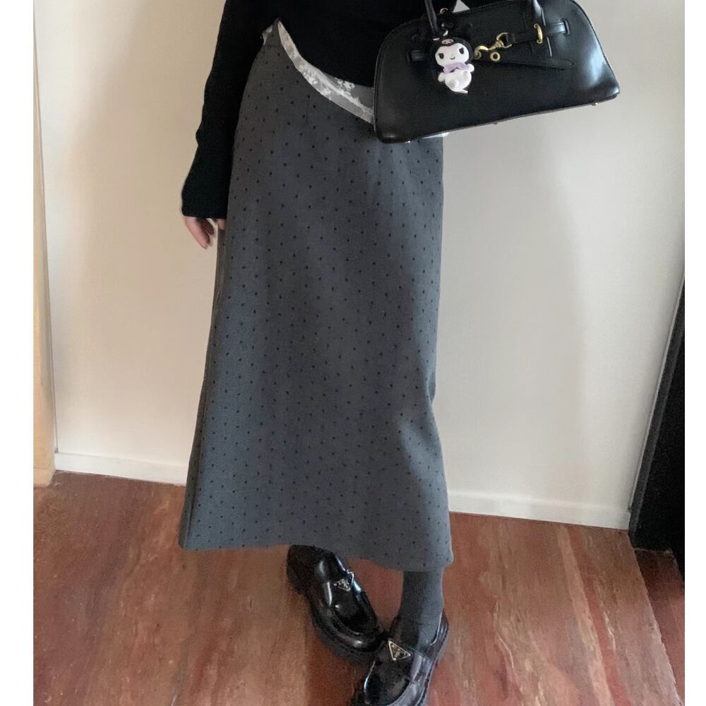 ドット柄のロングスカート。