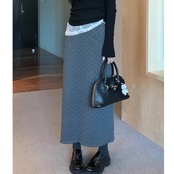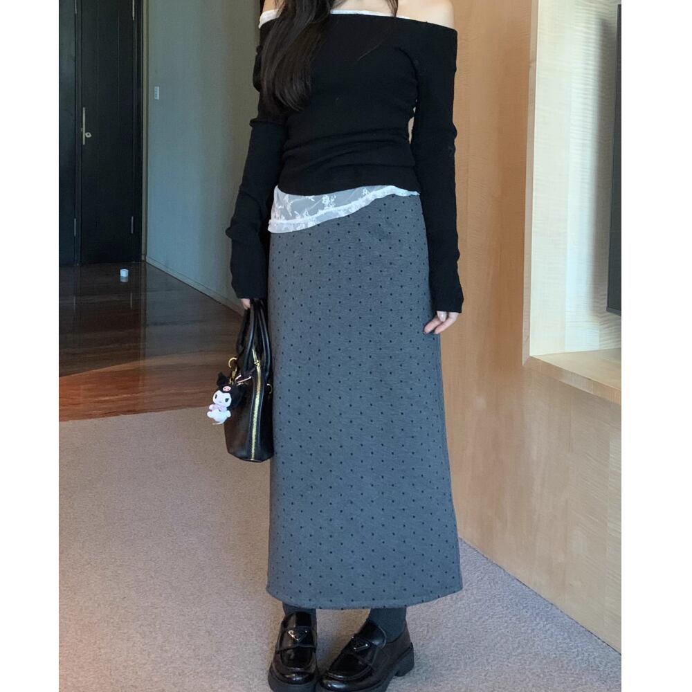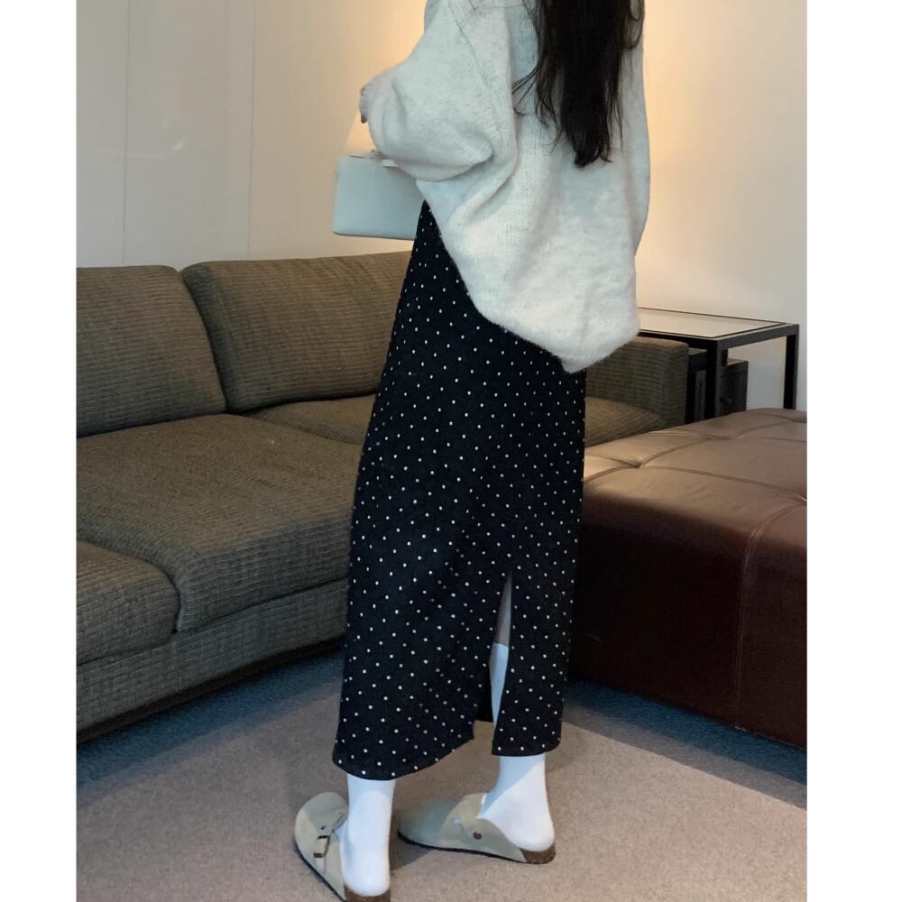 レディース ドット柄 ロングスカート バックスリット ブラック グレー AS12747
