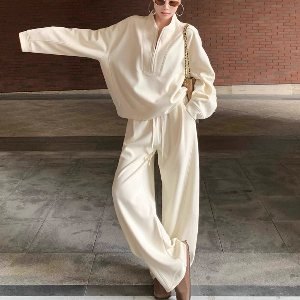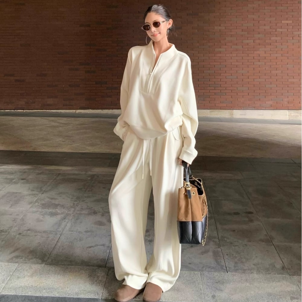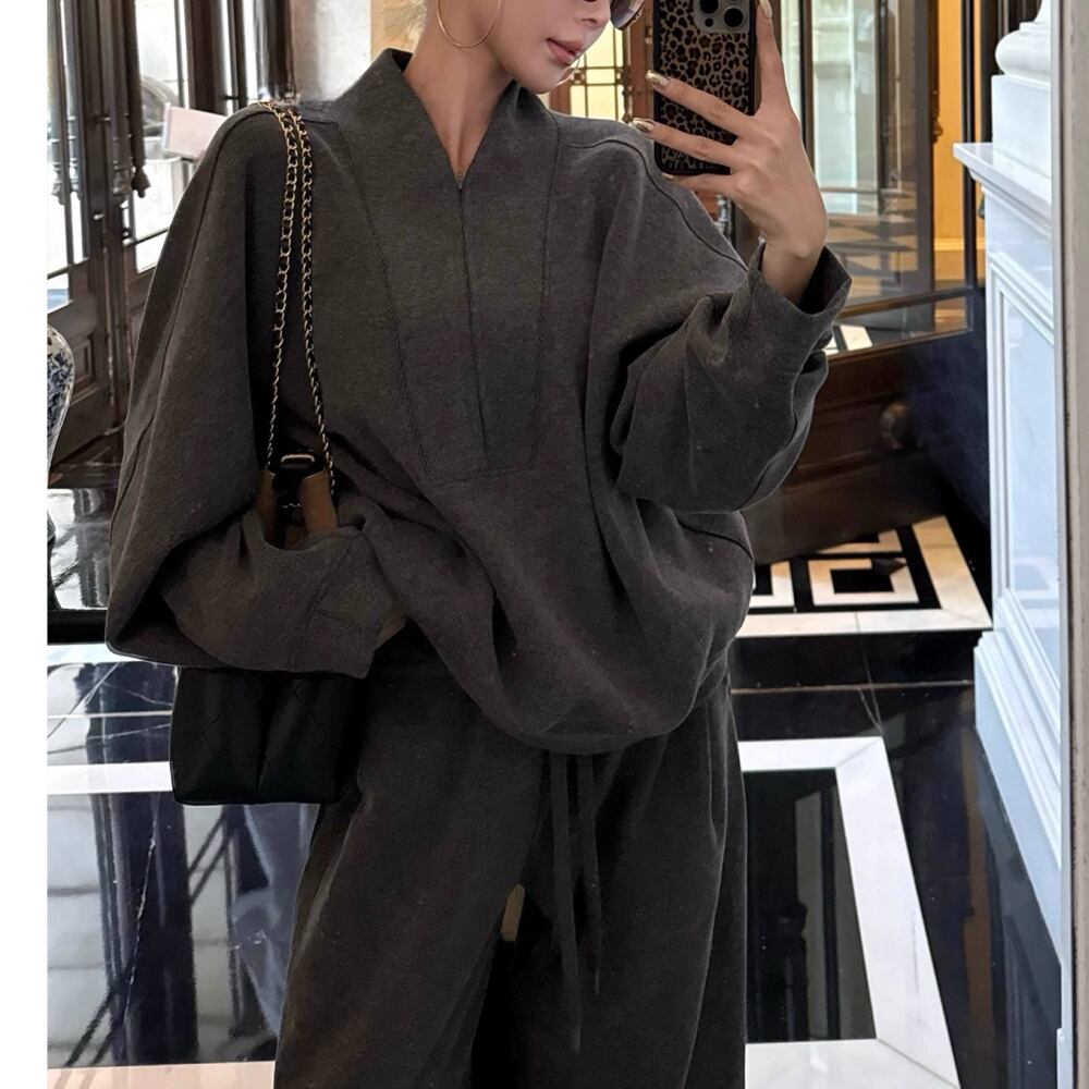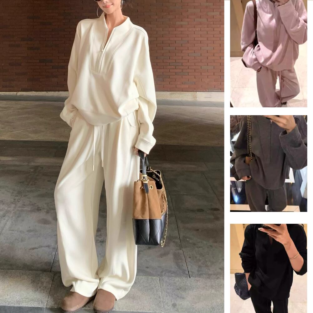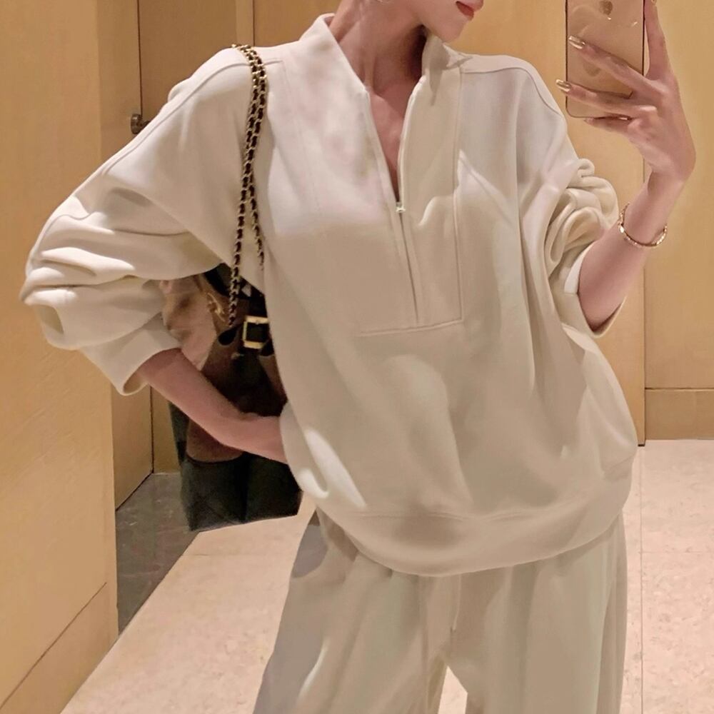 レディース スウェット トップス ハーフジップ 長袖 パンツ セットアップ AS12749