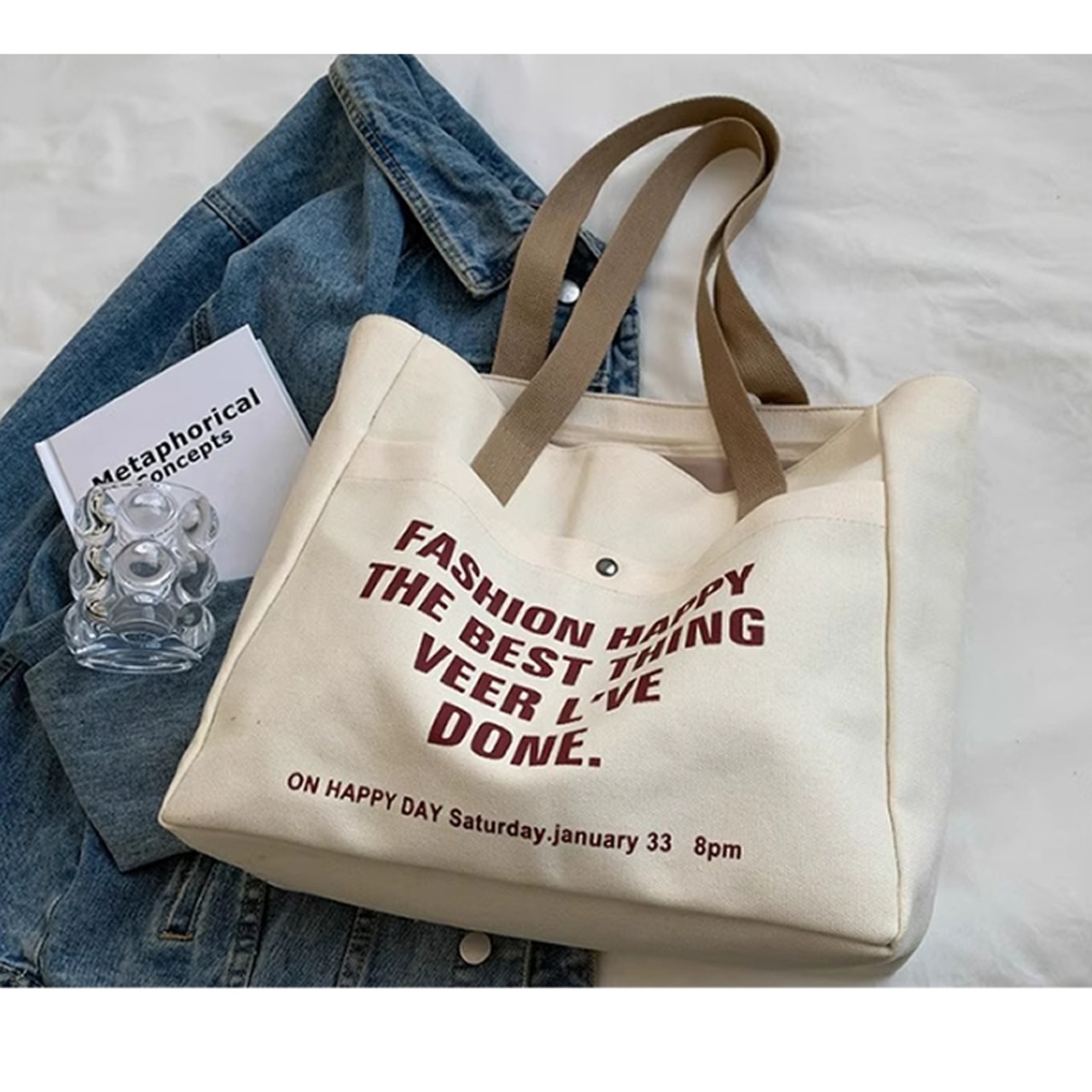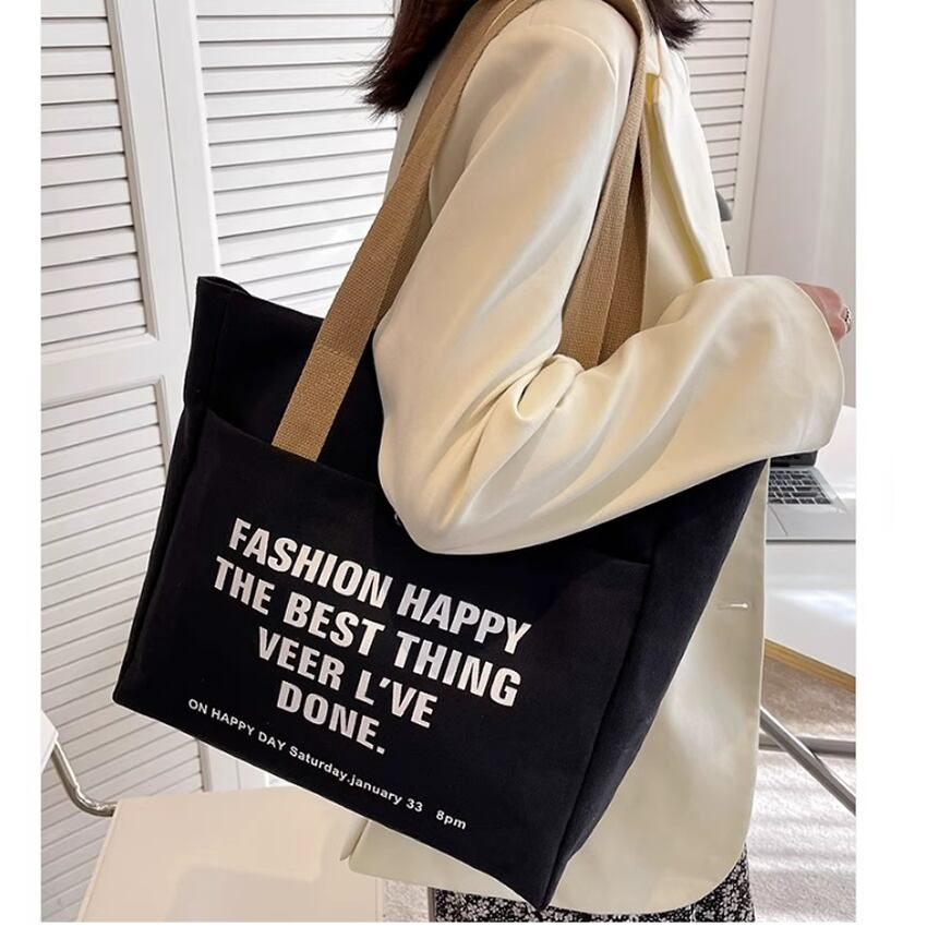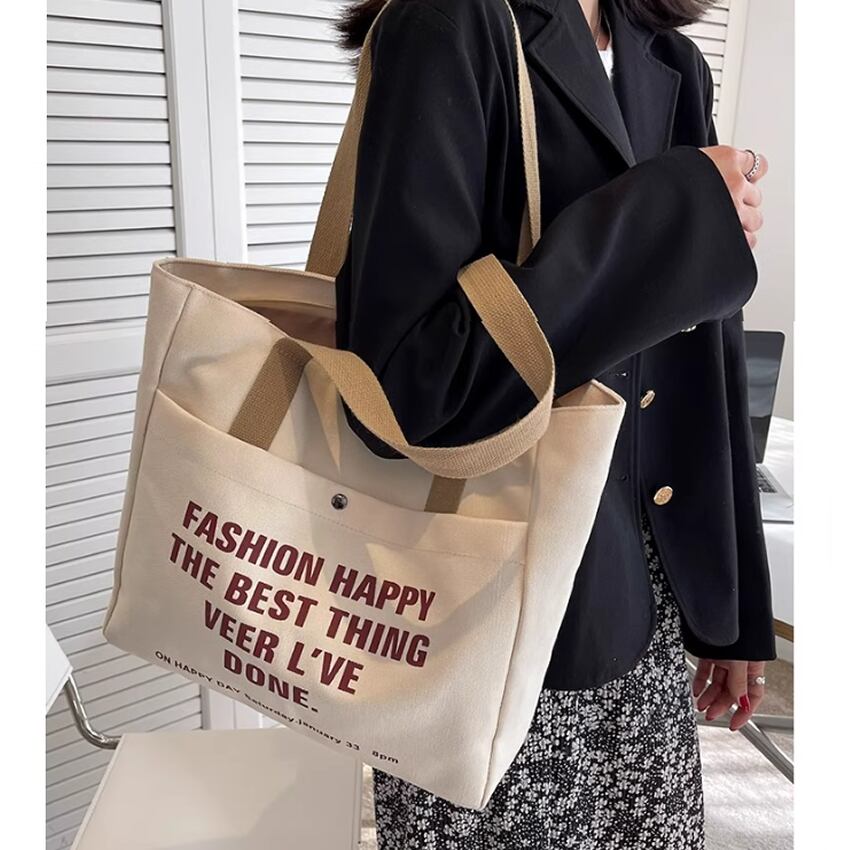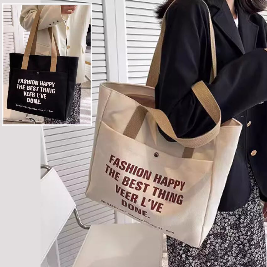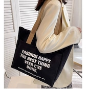 レディース トートバッグ ロゴ キャンバス ホワイト ブラック AS12754
