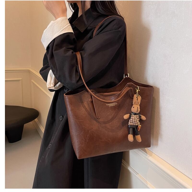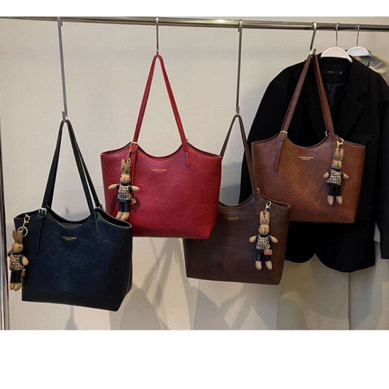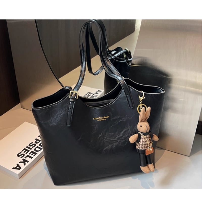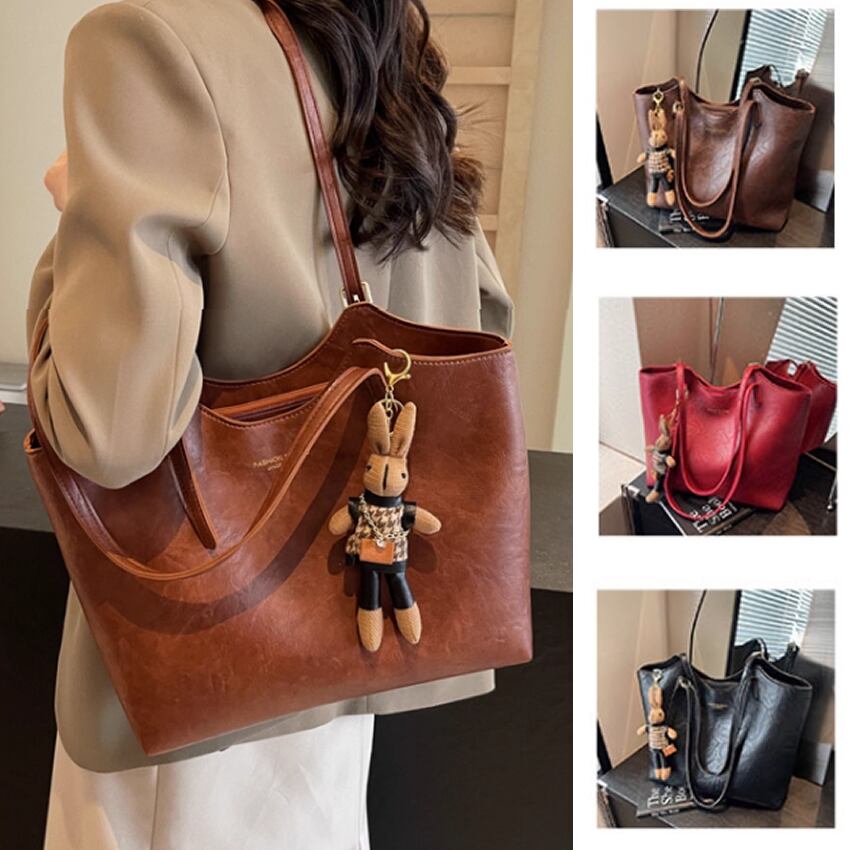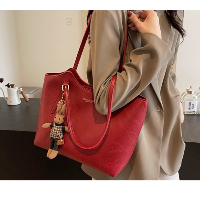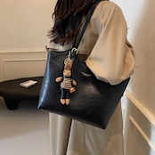 レディース トートバッグ フェイクレザー マスコット付き AS12756