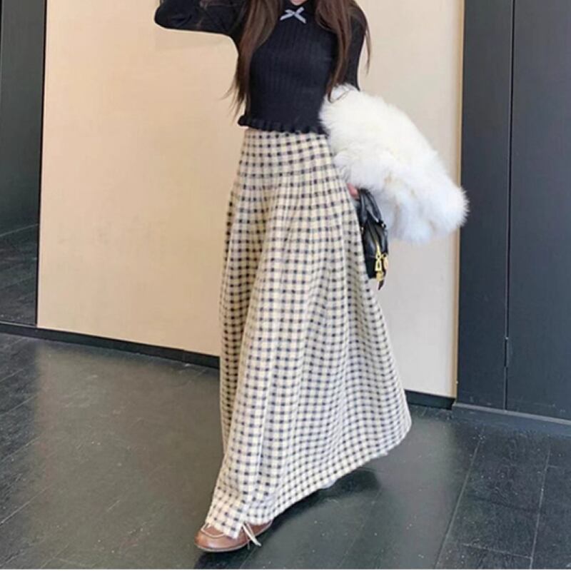 レディース チェック柄 ロングスカート ベージュ AS12775
