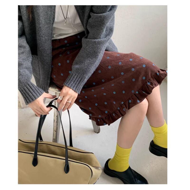レディース 水玉模様 ドット柄 スカート ミディアム丈 ネイビー ブラウン AS12784