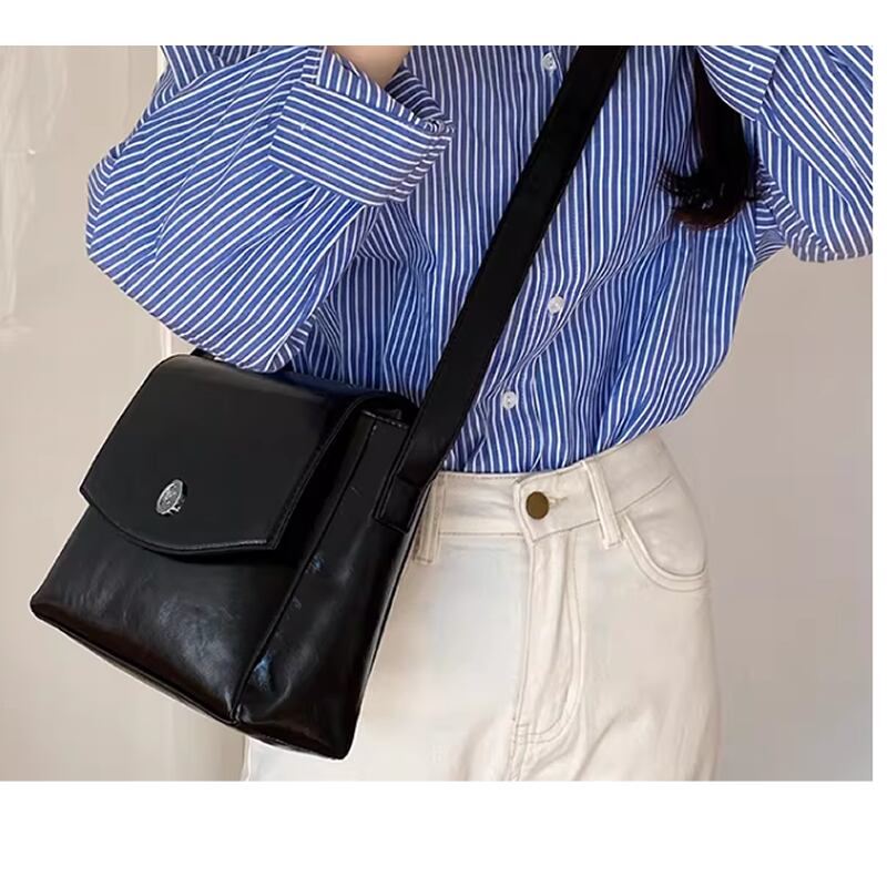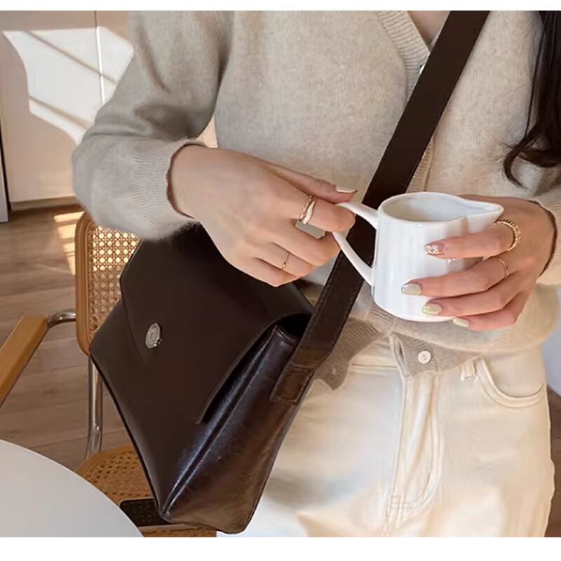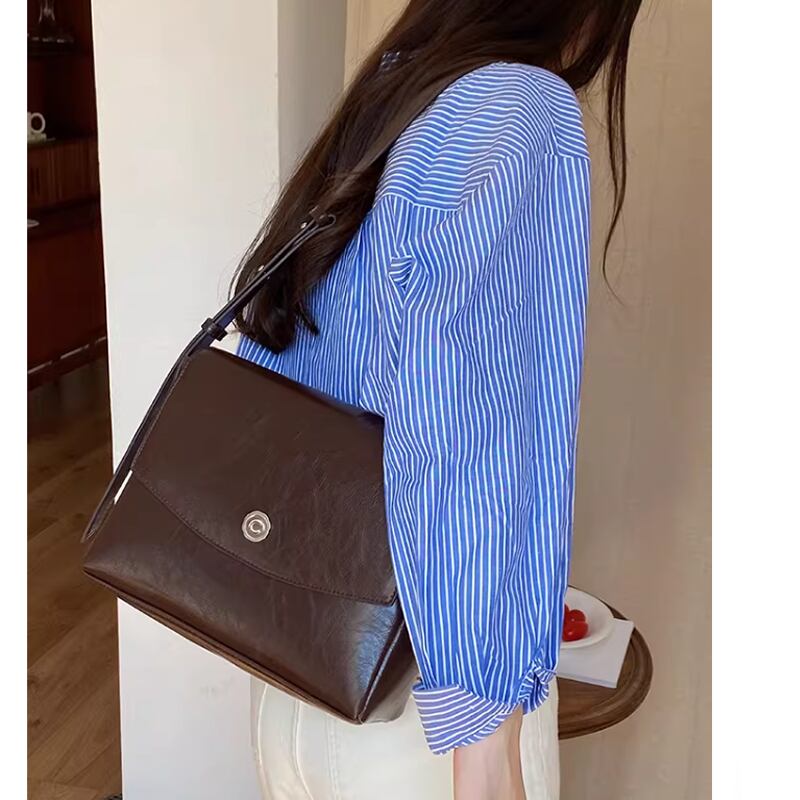 レディース フェイクレザー ショルダーバッグ シンプル ブラウン ブラック AS12788
