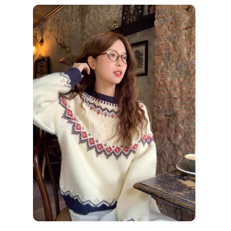 レディース トップス フェアアイル柄 セーター 長袖 ホワイト AS12790