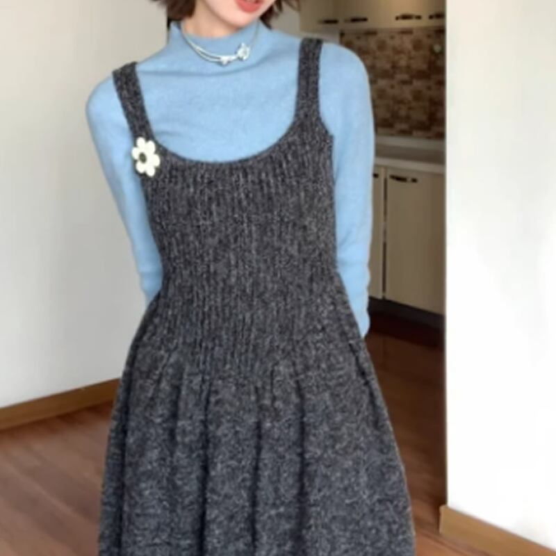 レディース グレー ニット ジャンパースカート ロング丈 AS12791