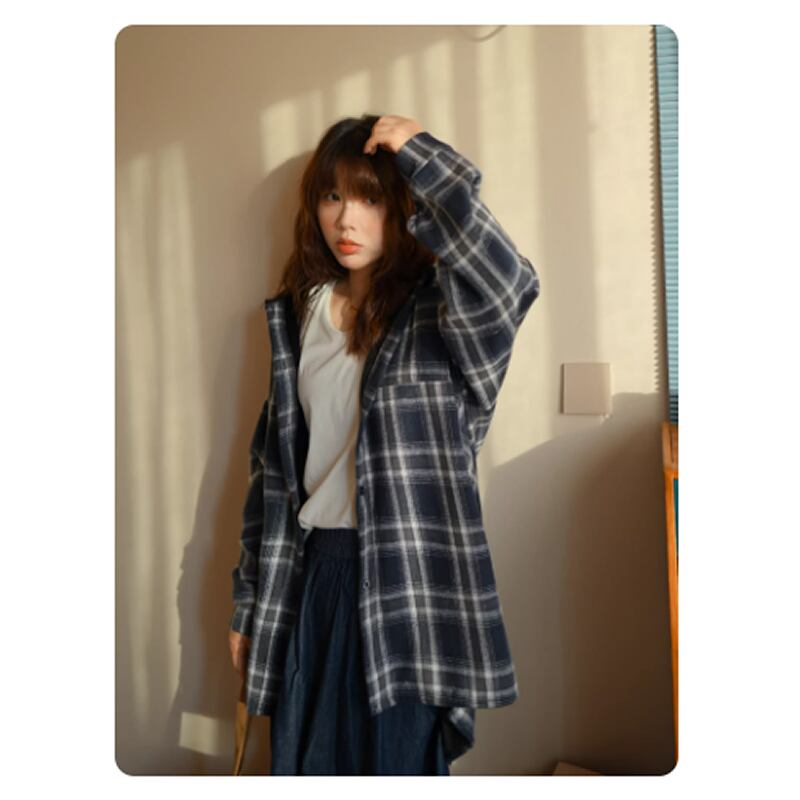 レディース トップス シャツ チェック柄 フード付き 長袖 AS12805