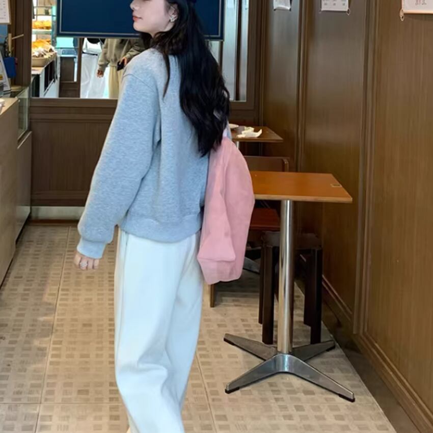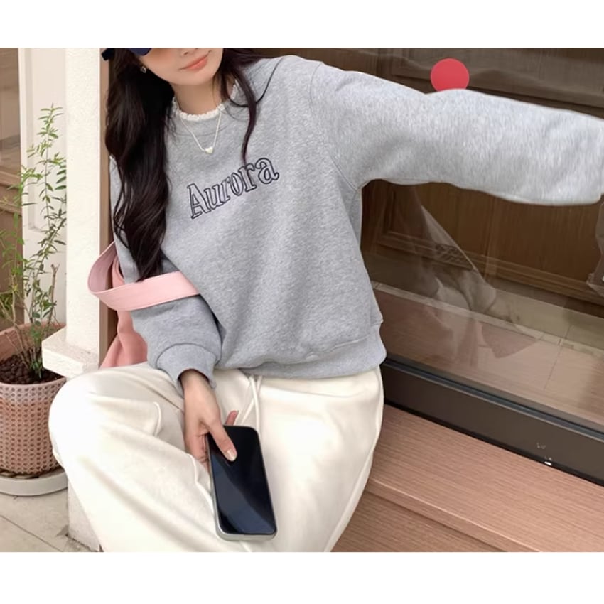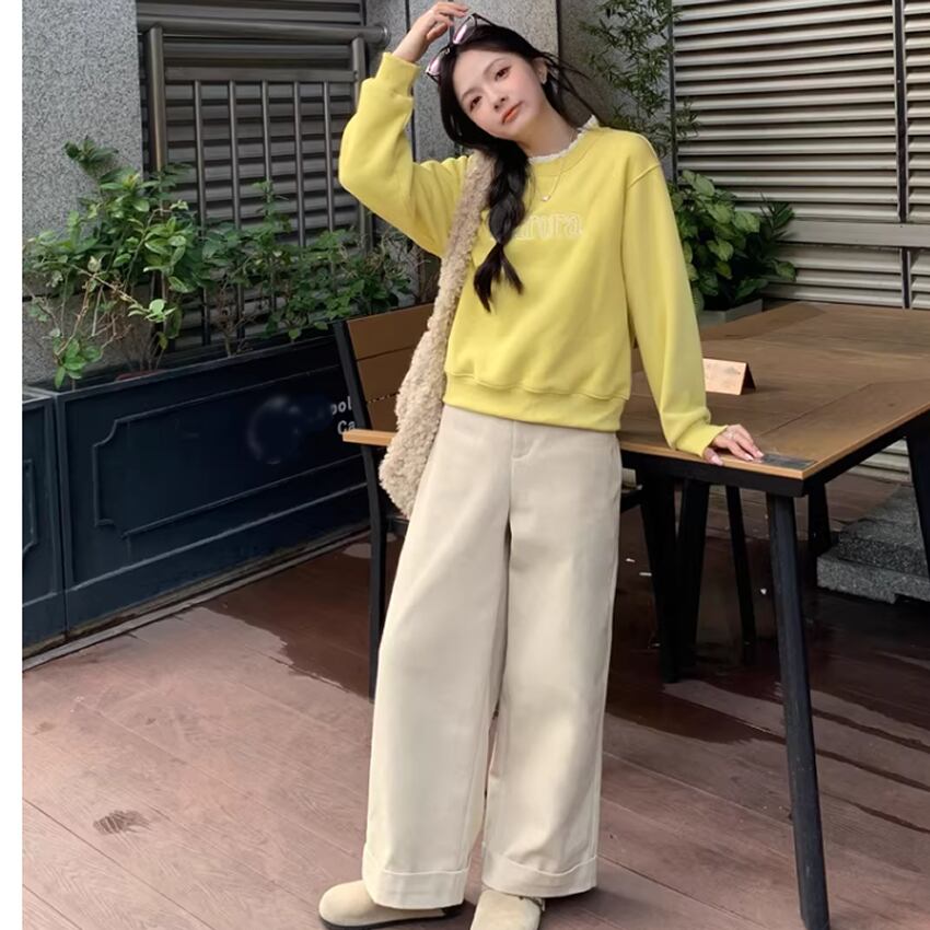 レディース トップス レーストリム 長袖 スウェット ロゴ グレー イエロー AS12815