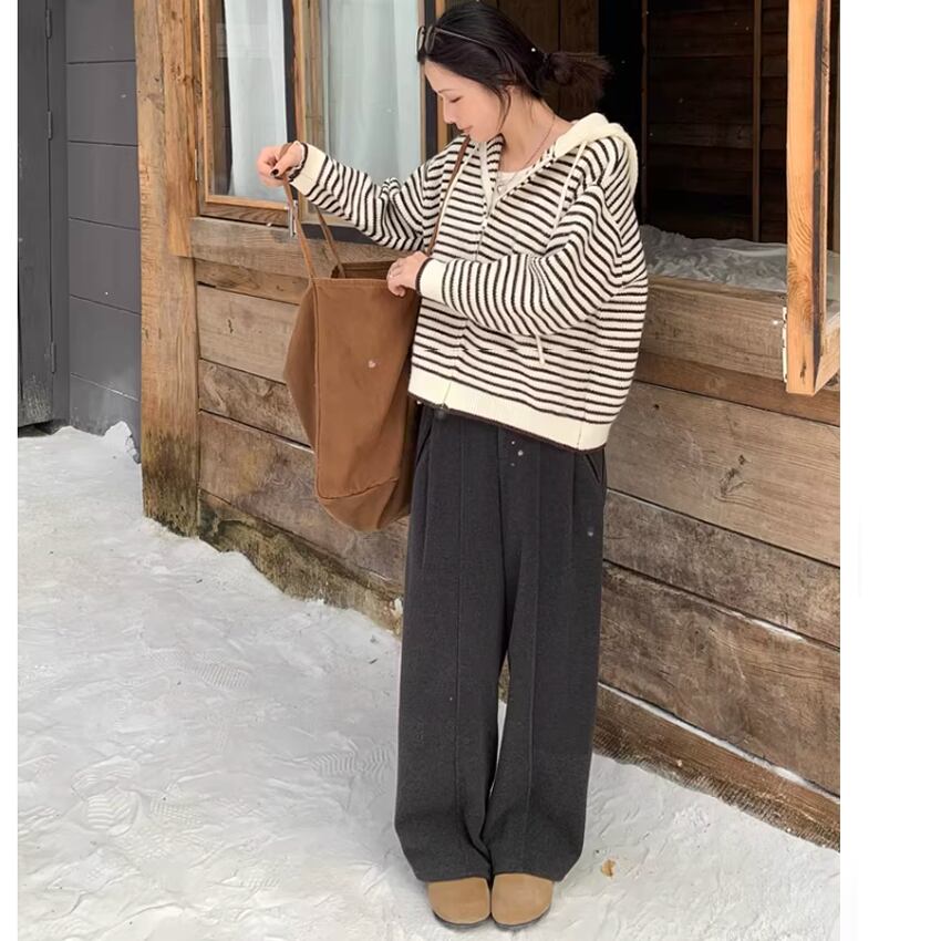 レディース カジュアルパンツ ワイドレッグ グレー AS12819