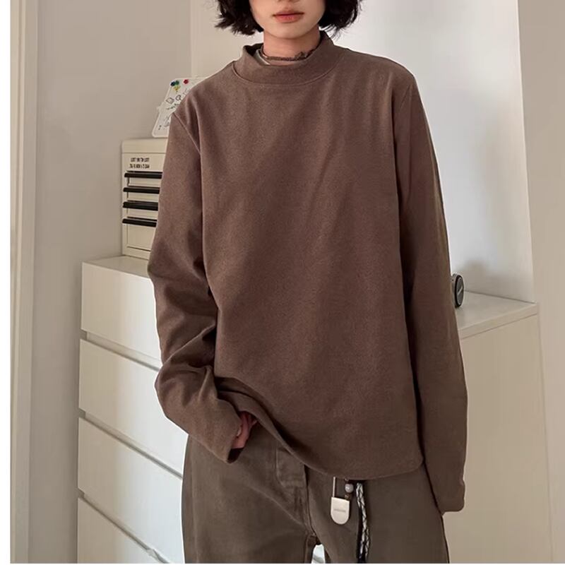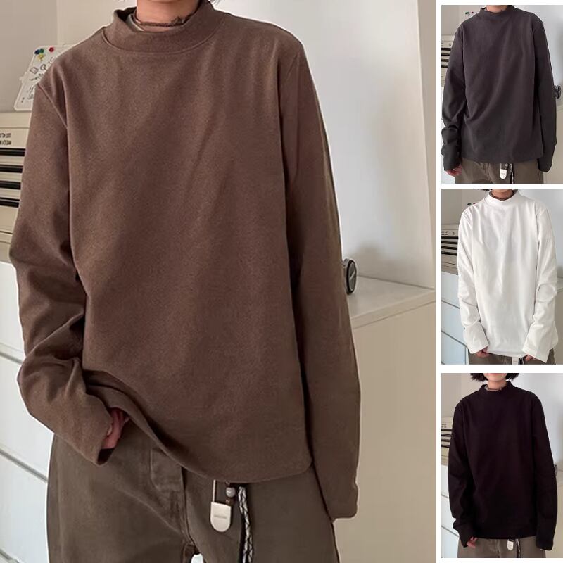 無地のハイネックトップス。