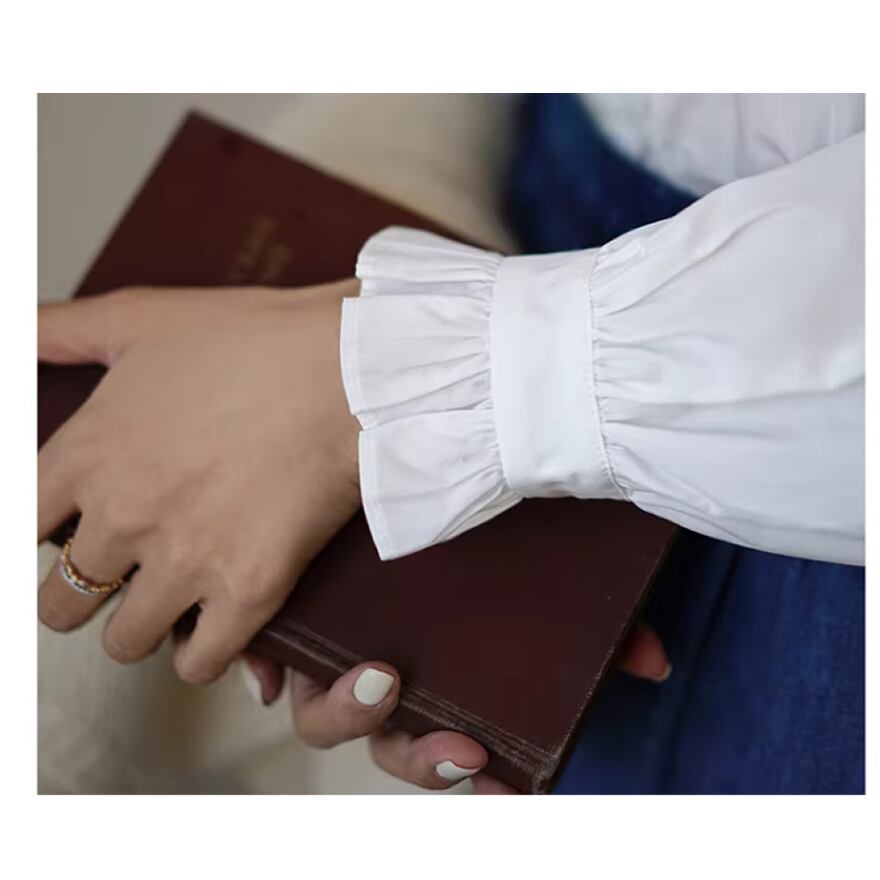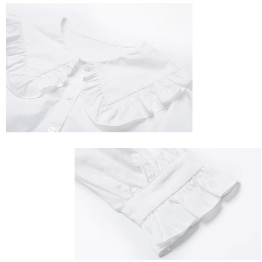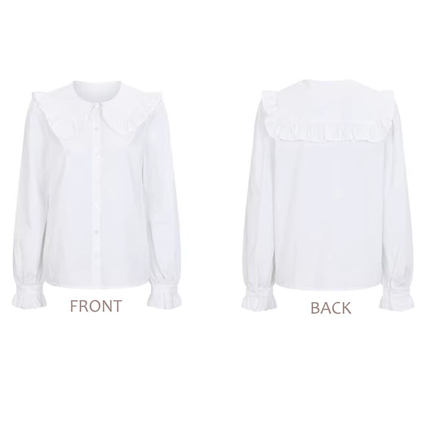 レディース ビッグカラー フリル 長袖 トップス ブラウス ホワイト AS12831