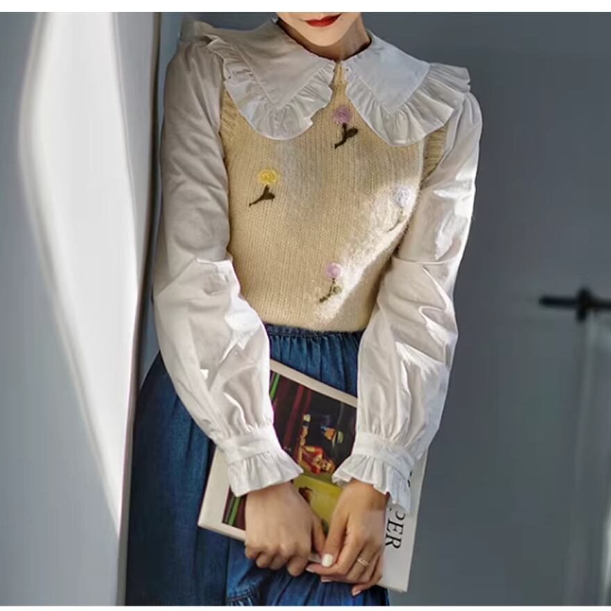 フリルが可愛いビッグカラーのブラウス。