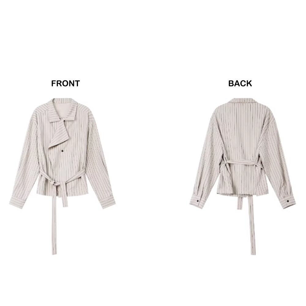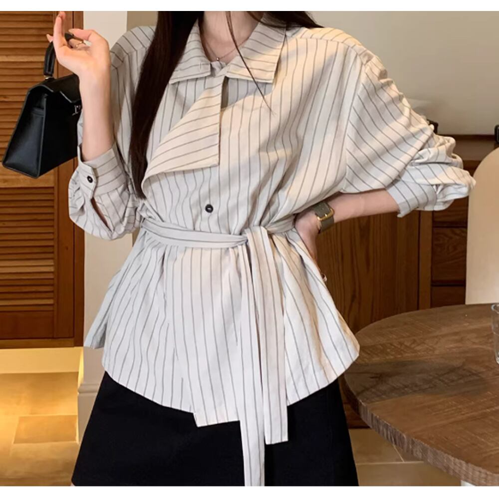 レディース トップス ストライプ柄 シャツ 長袖 アプリコット AS12846