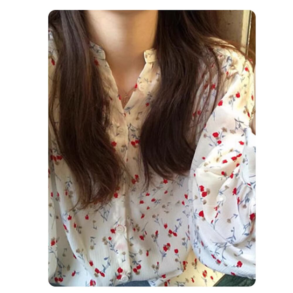 レディース 花柄 長袖 シャツ ブラウス トップス スタンドカラー AS12851