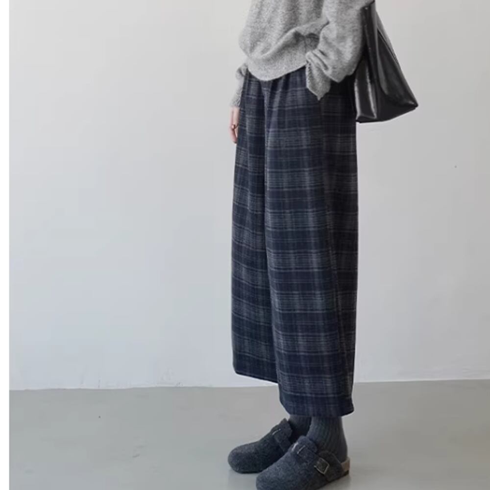 レディース チェック柄 ワイドレッグパンツ カジュアルパンツ ブラック AS12858
