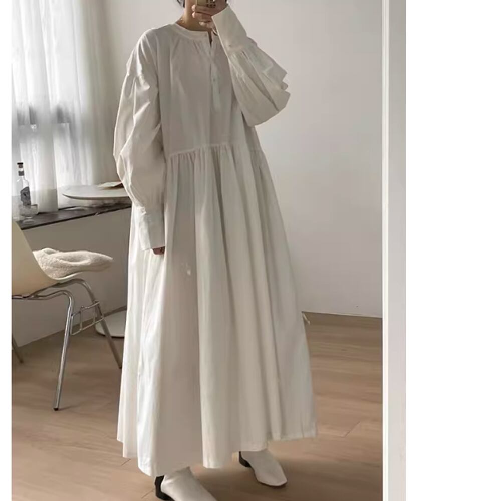 レディース ワンピース 長袖 ロング丈 ホワイト AS12878