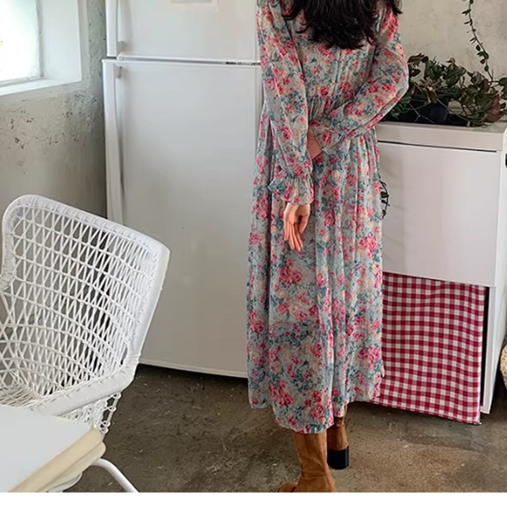 レディース 花柄 ワンピース 長袖 ロング丈 AS12887