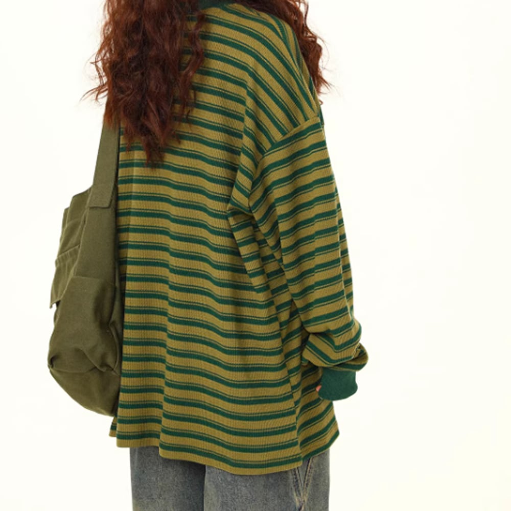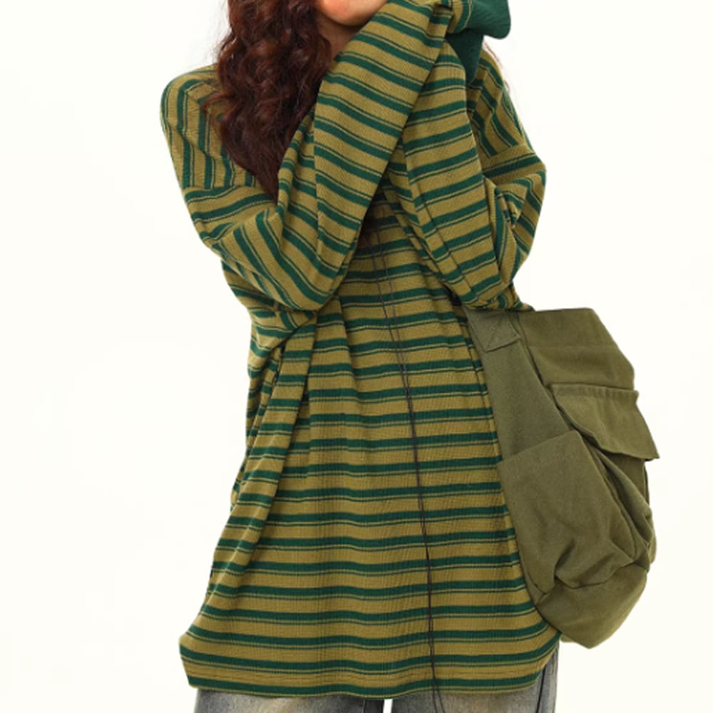レディース 長袖 トップス Tシャツ 長袖 ボーダー柄 グリーン ロング丈 AS12893