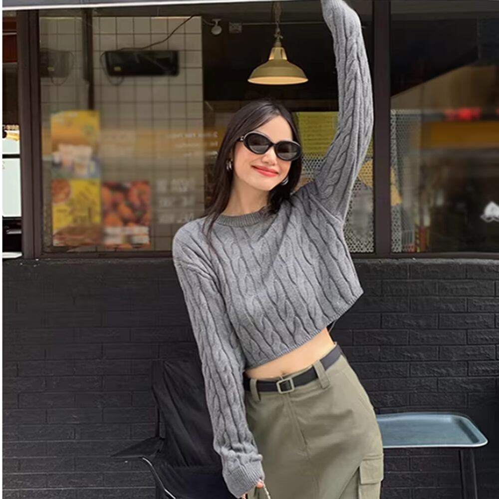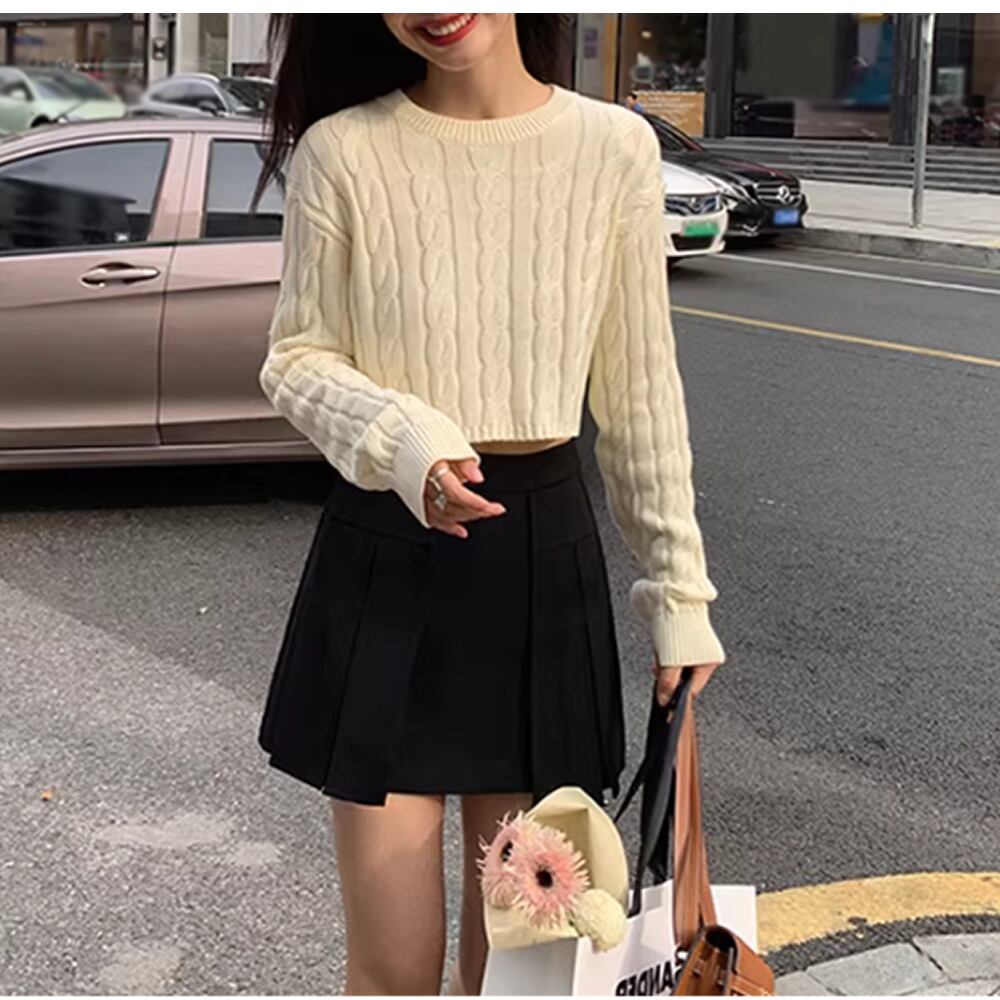 レディース 長袖 トップス ケーブルニット セーター ショート丈 AS12898