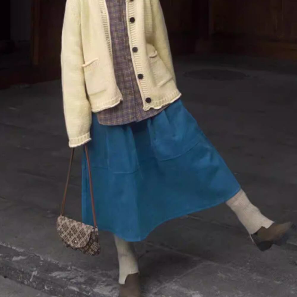 レディース ミディアム丈 コーデュロイ スカート ブルー AS12907