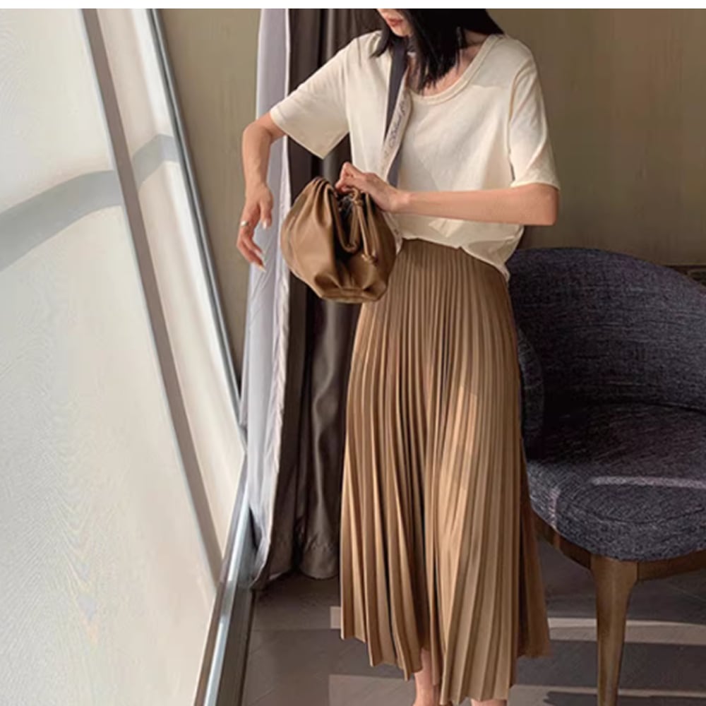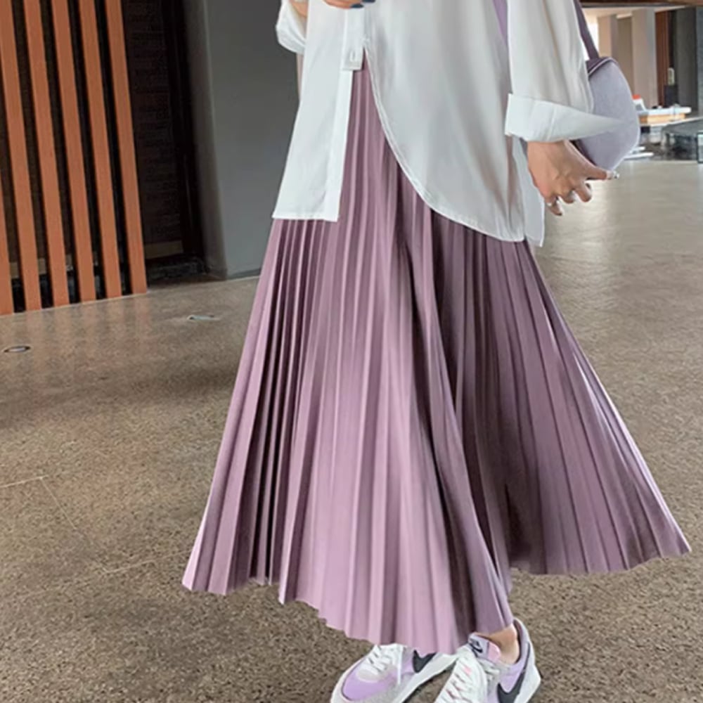 ロング丈のプリーツスカート。