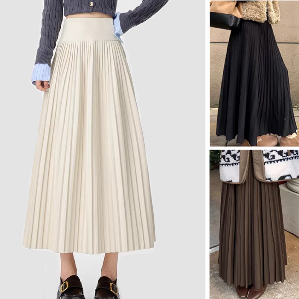 レディース プリーツスカート ロング丈 アプリコット ブラック カーキ AS12923