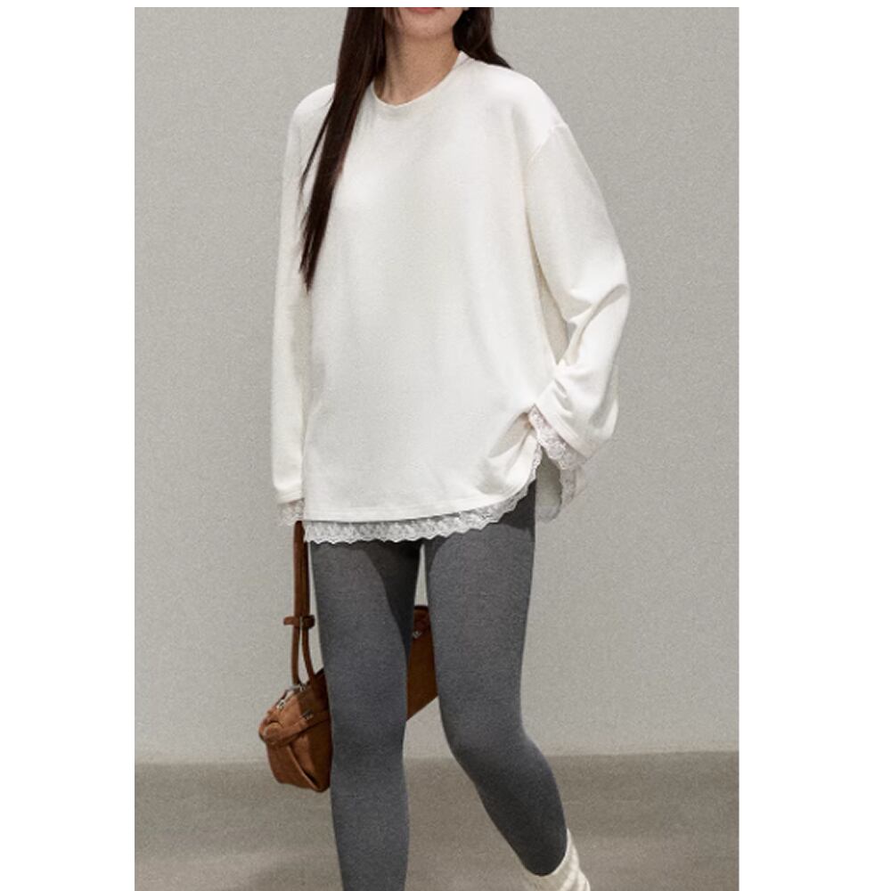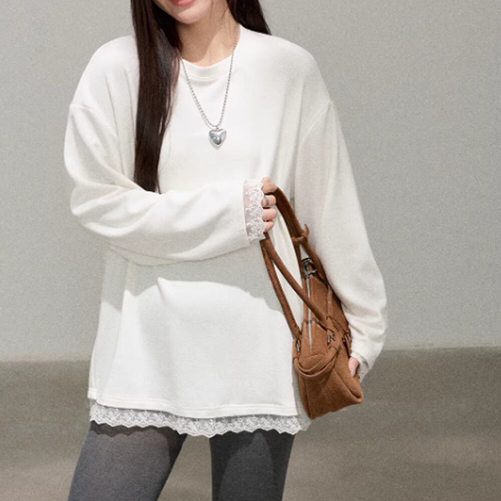 裾と袖のレースが可愛い長袖トップス。